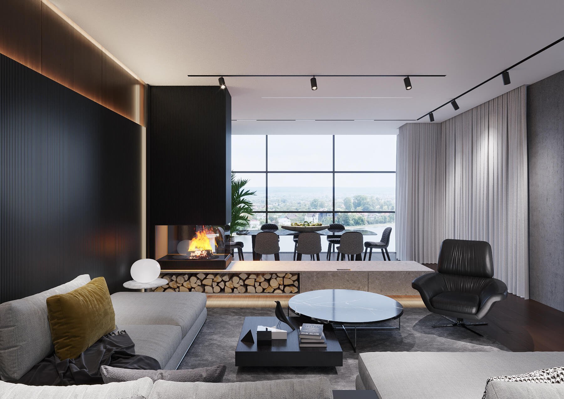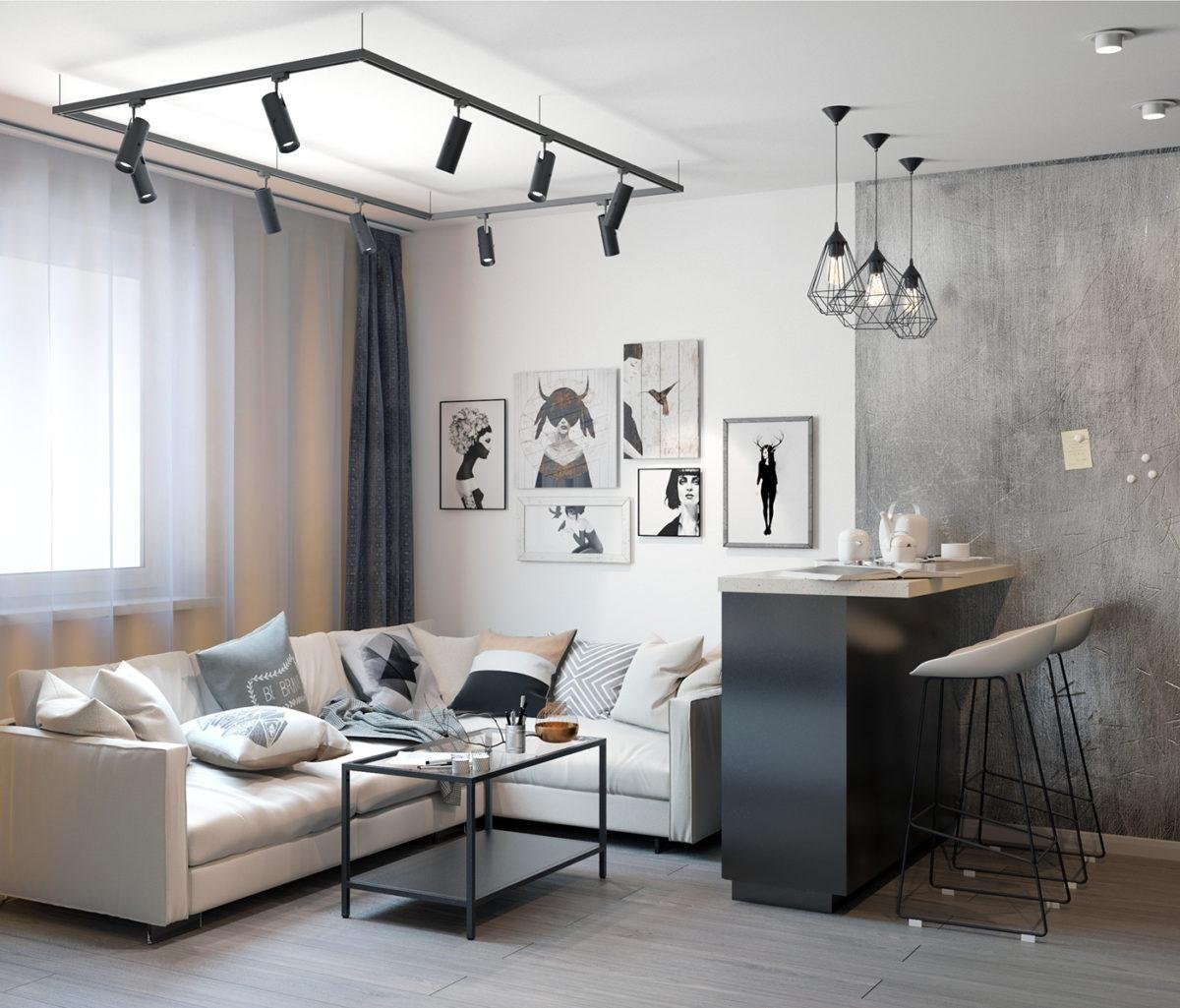 Трековые светильники в гостиной