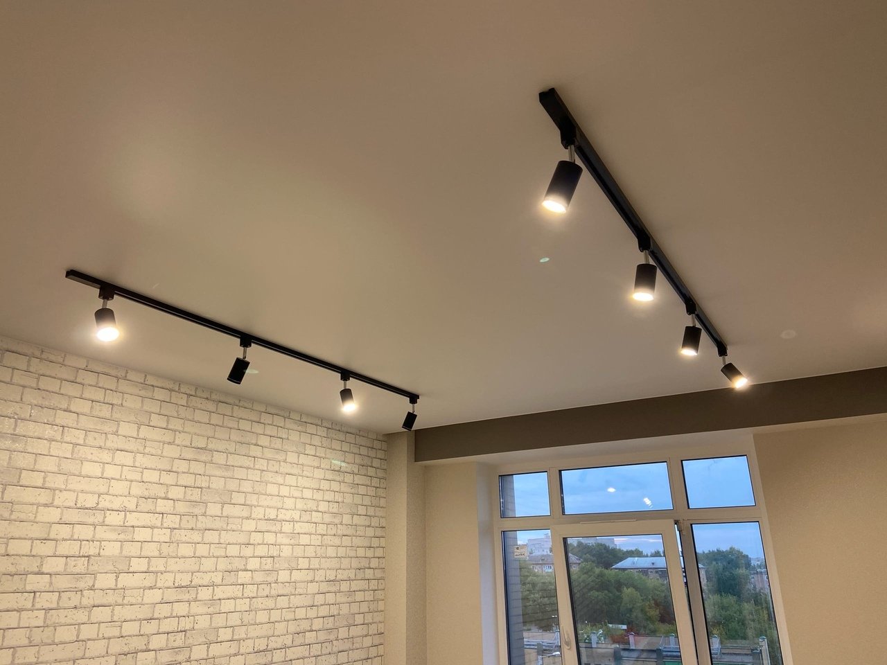 Потолок с трековыми светильниками