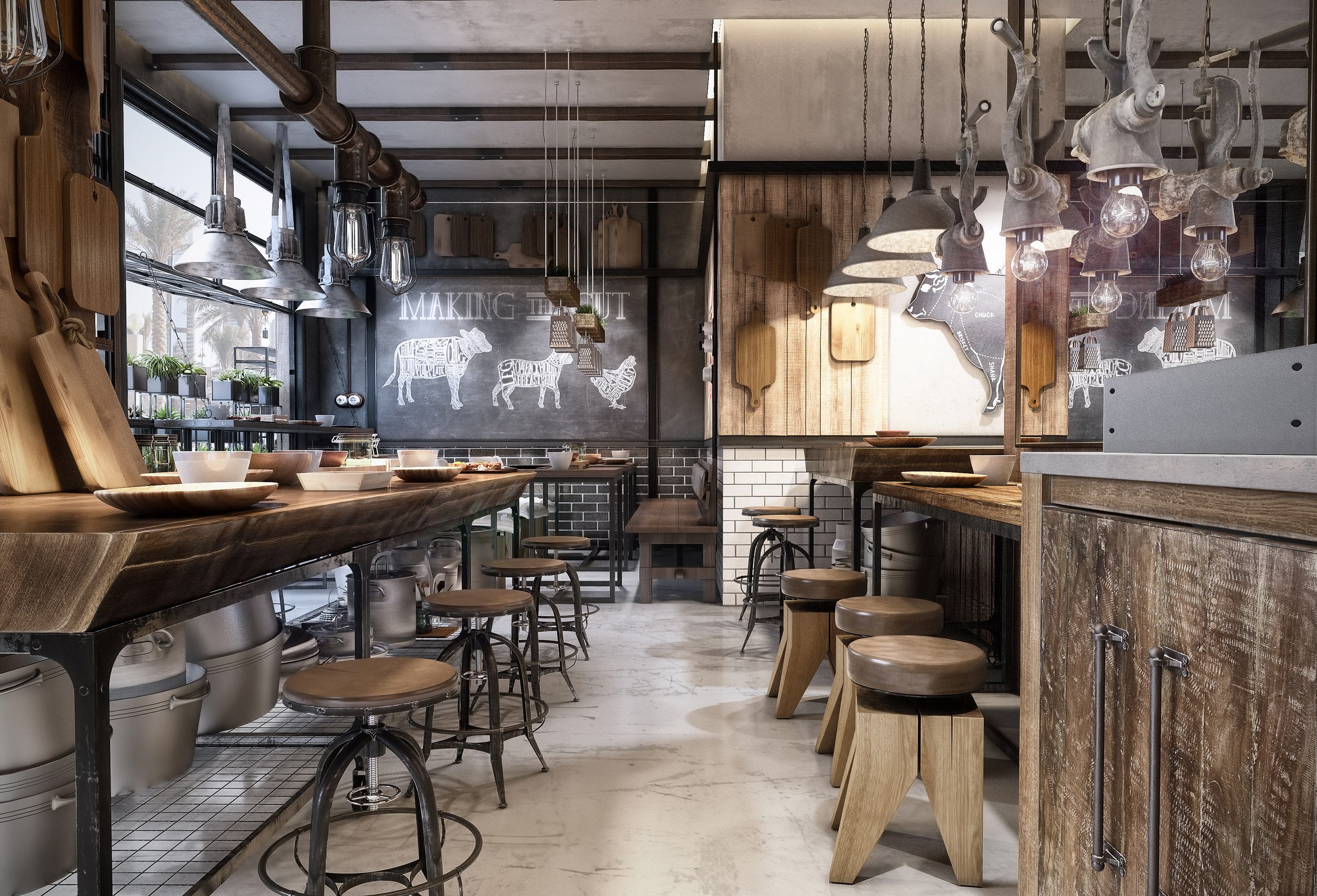 Стиль Индастриал в интерьере кафе