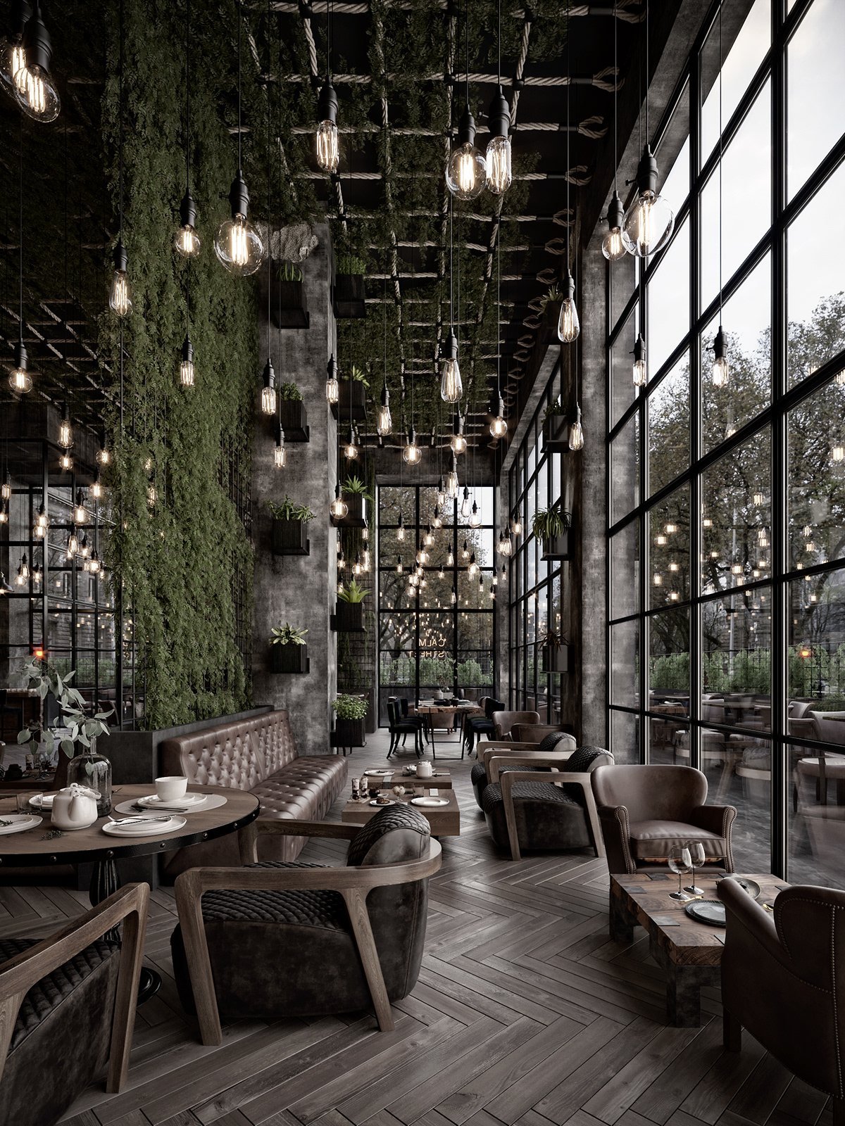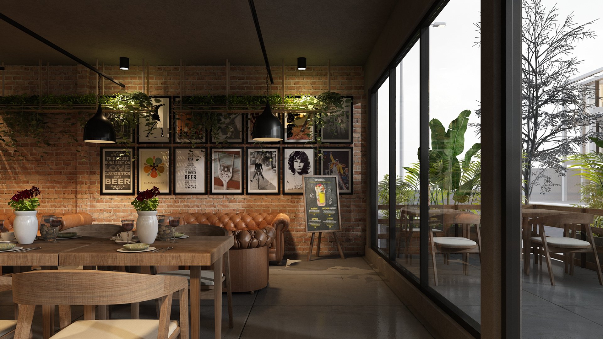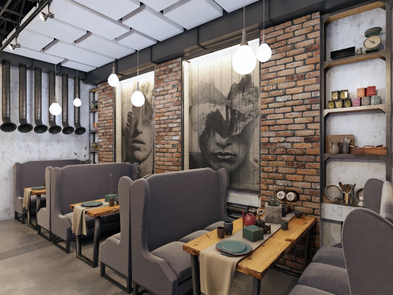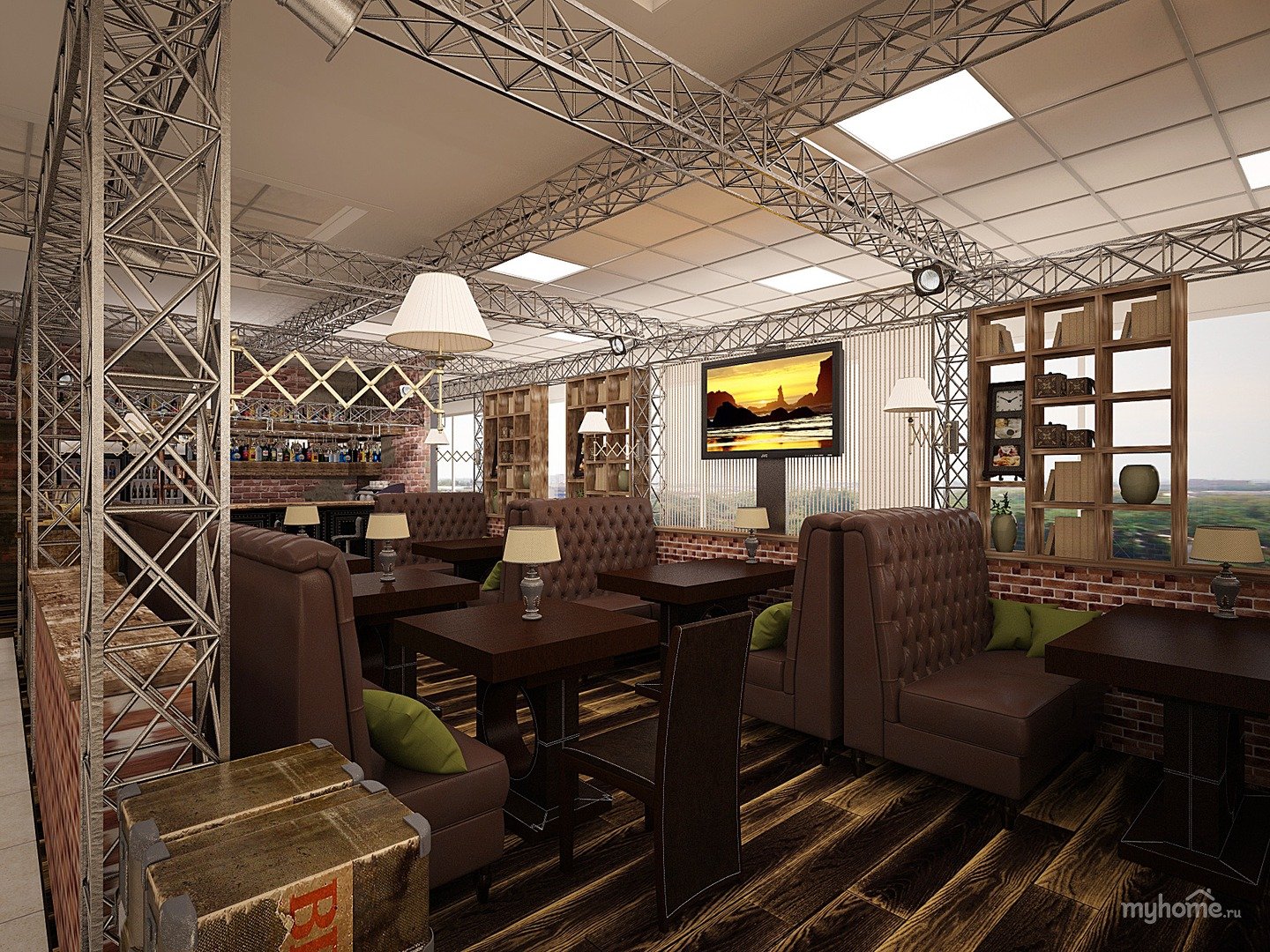 Визуализация кафе в стиле лофт