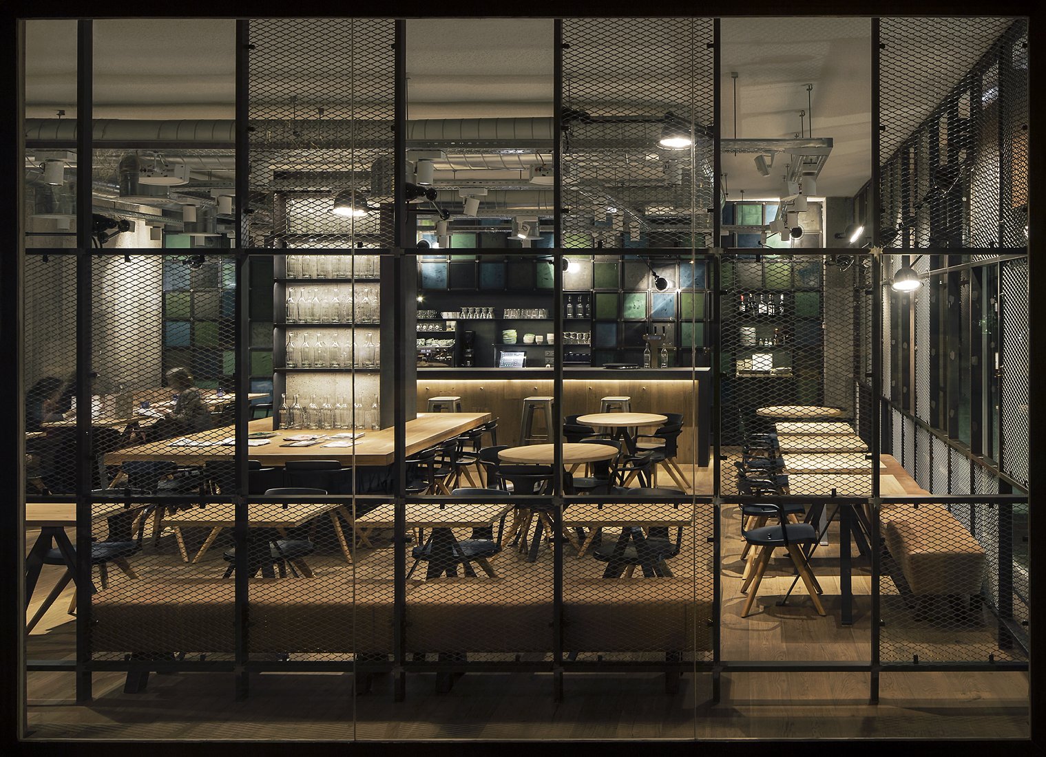 Металлическая сетка в интерьере кафе