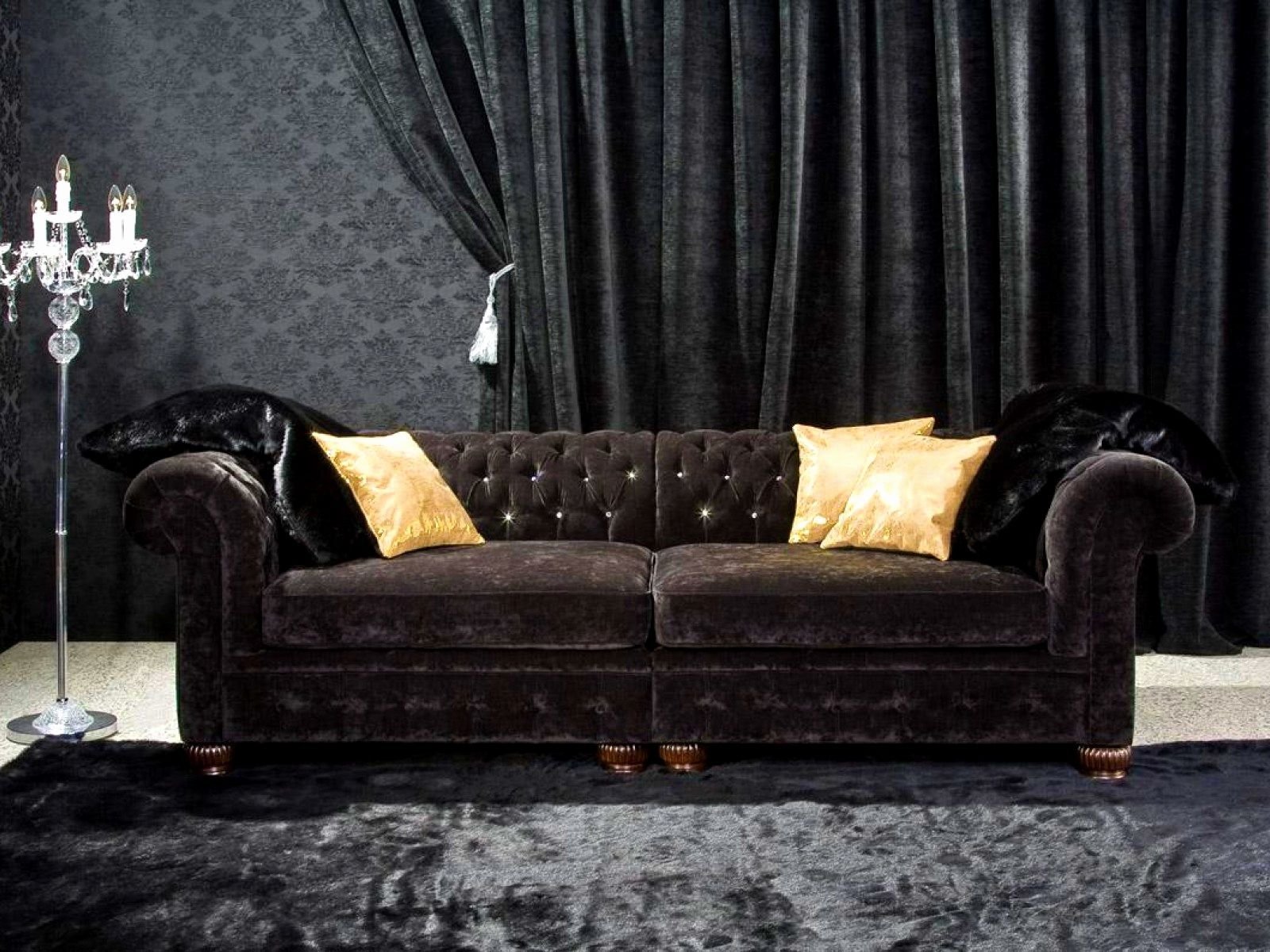 Диван Честер черный велюр бархат