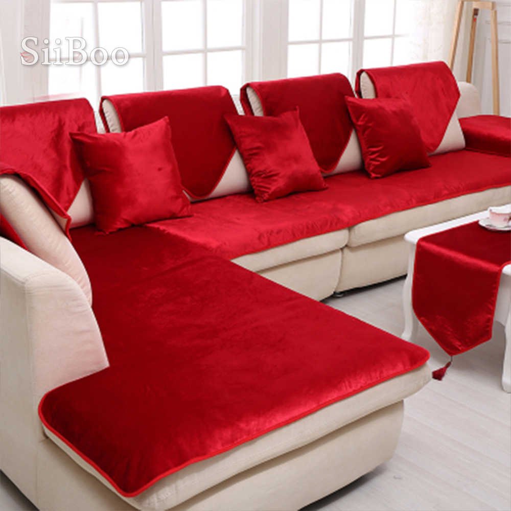 Красный велюровый диван