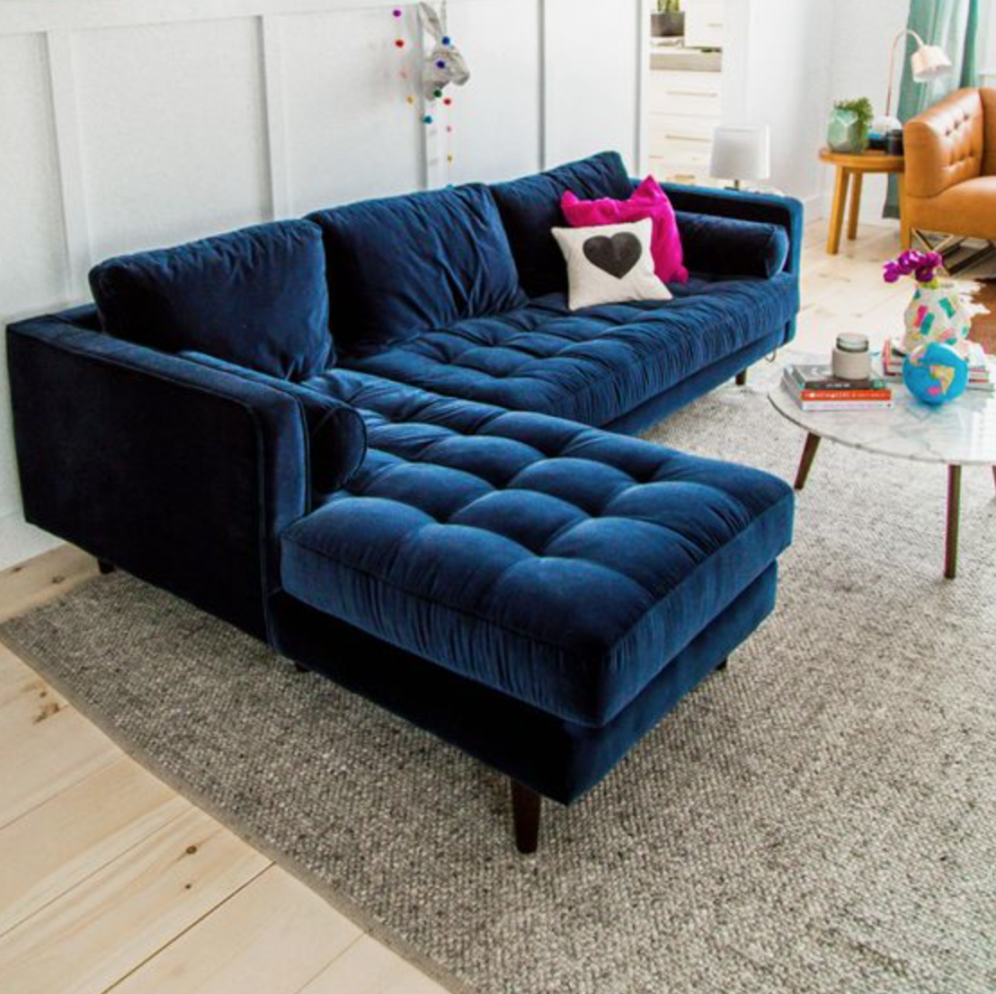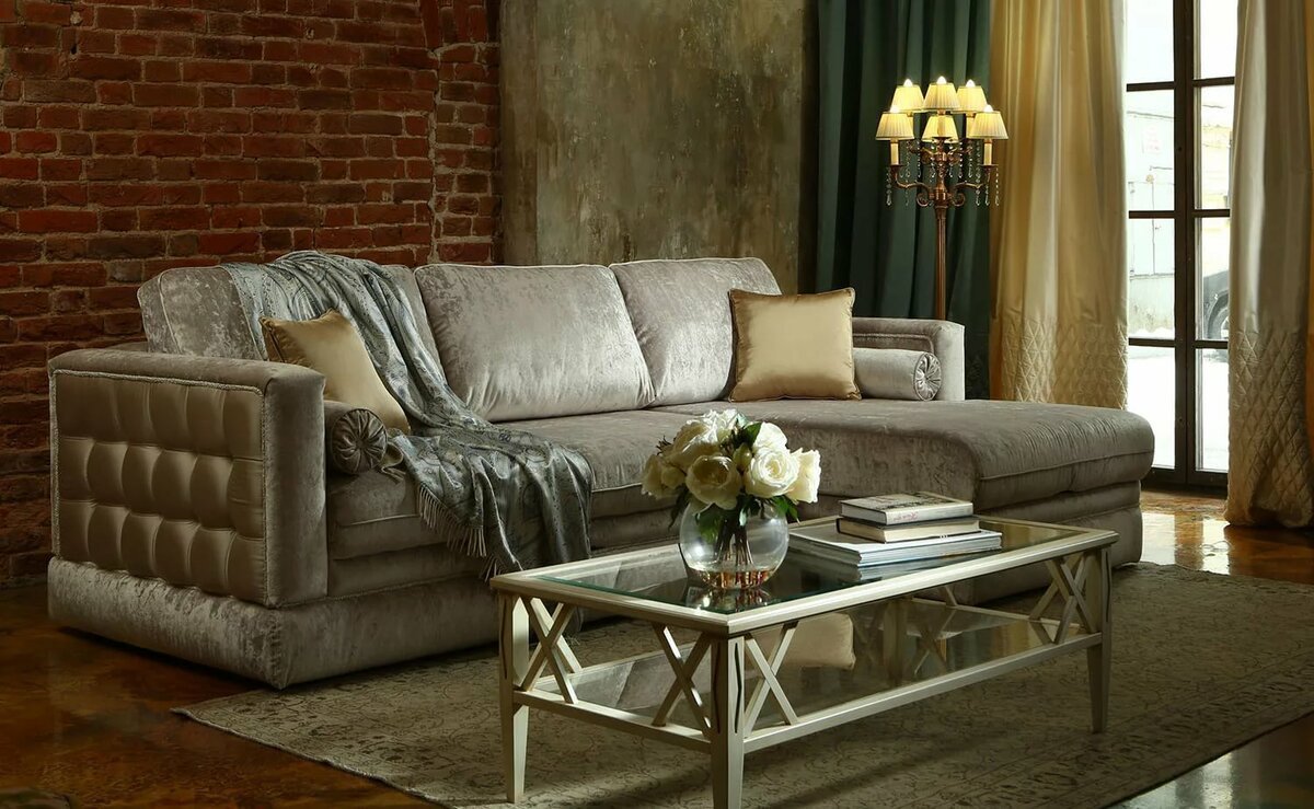 Велюровый диван в интерьере