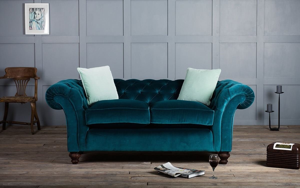 Диван Честер бархатный бирюза