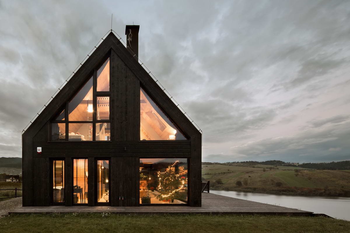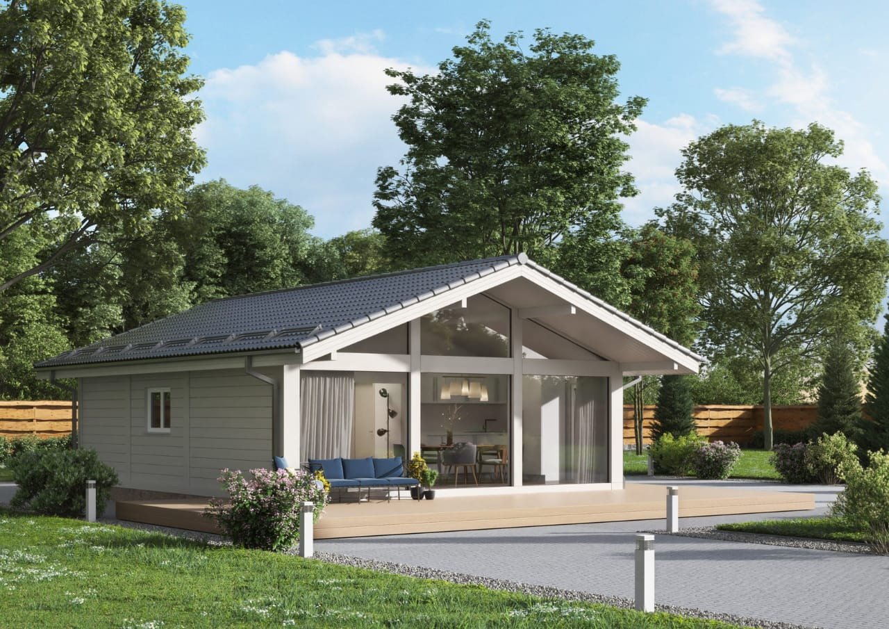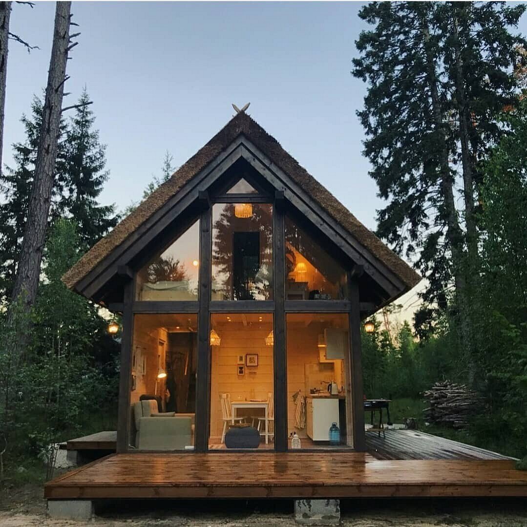 Маленький домик с панорамными окнами