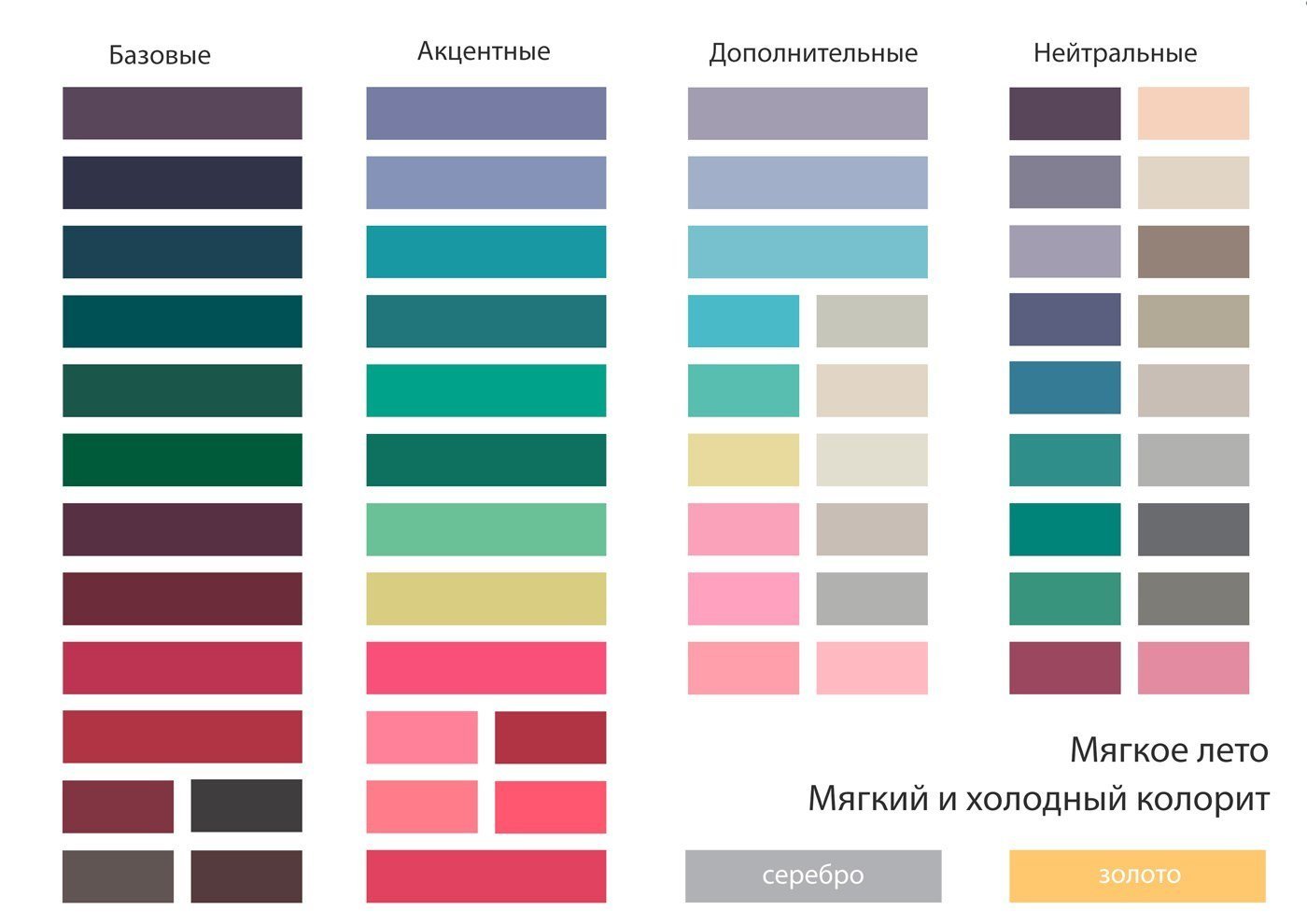 Мягкое Холодное лето цветотип палитра