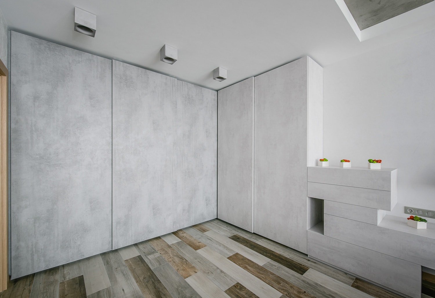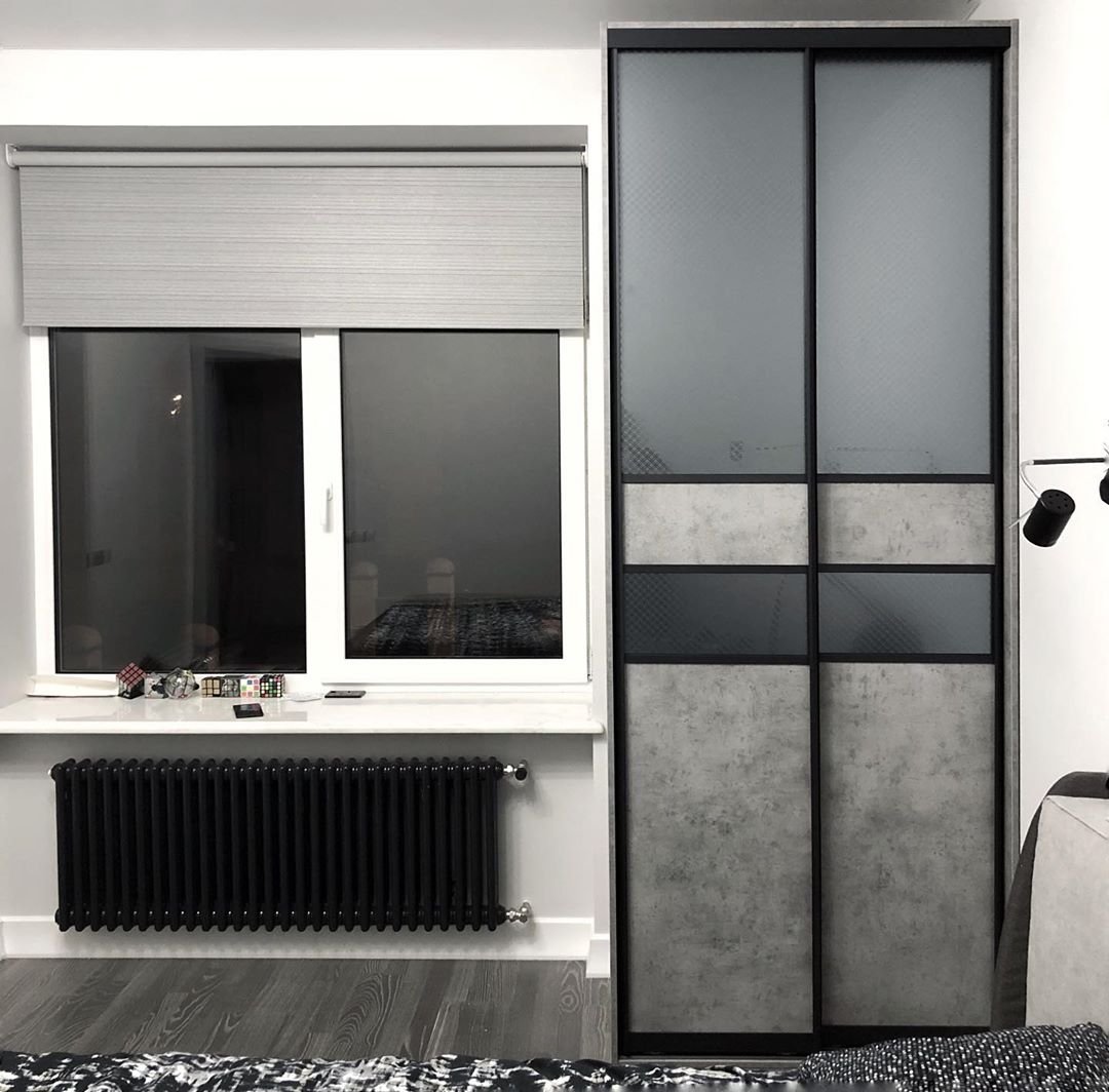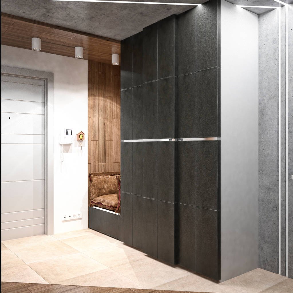 Шкаф купе под бетон в интерьере