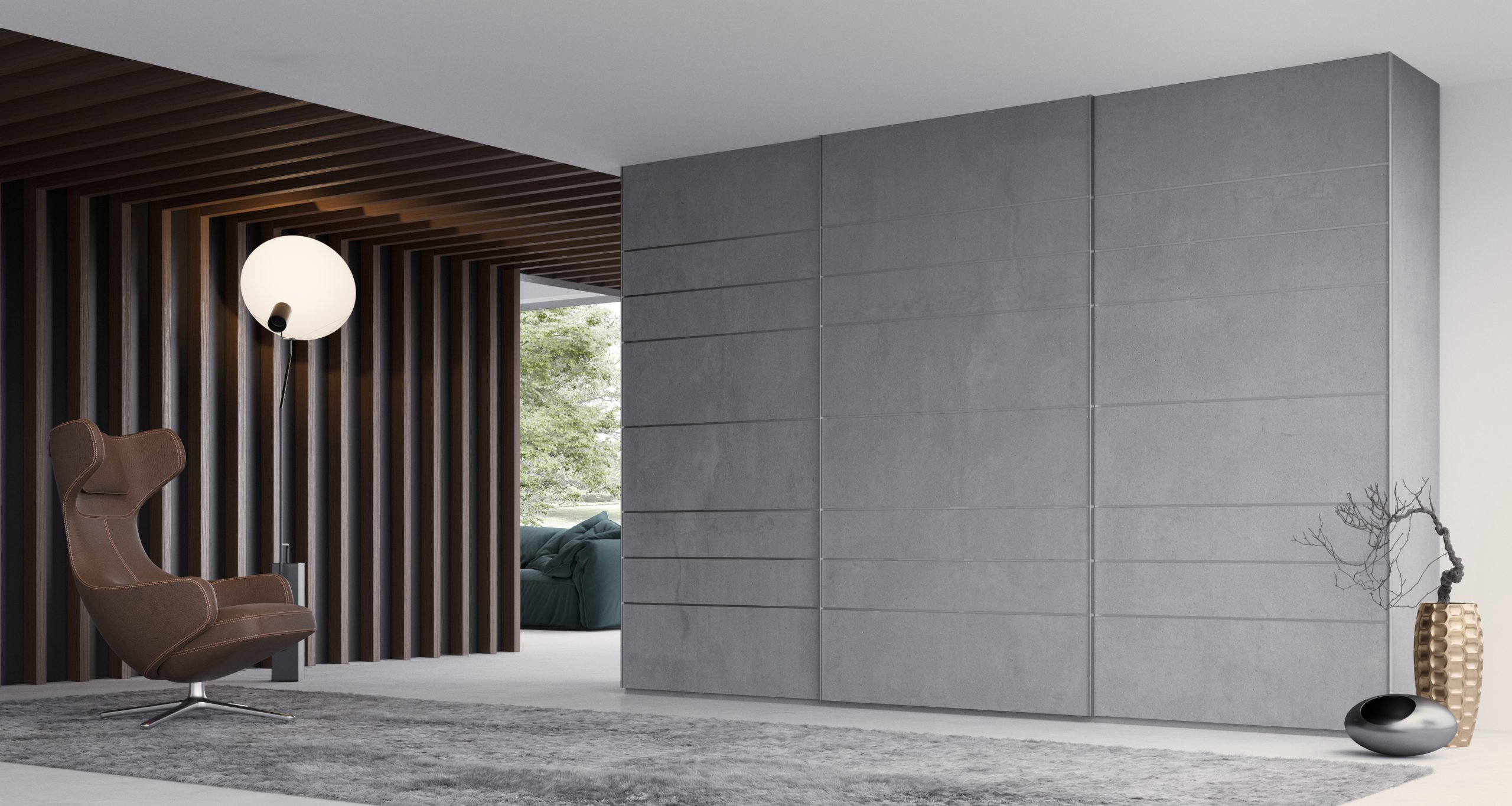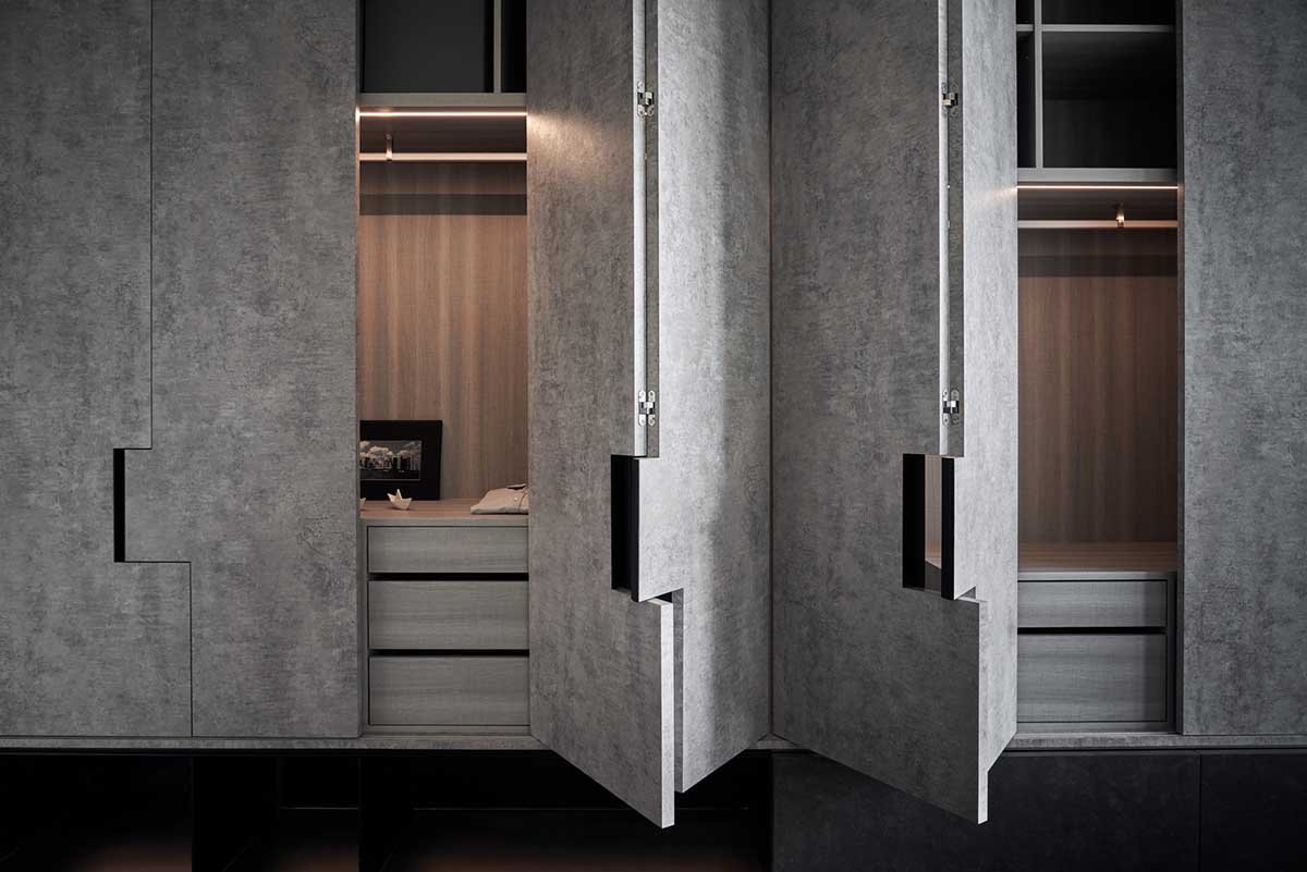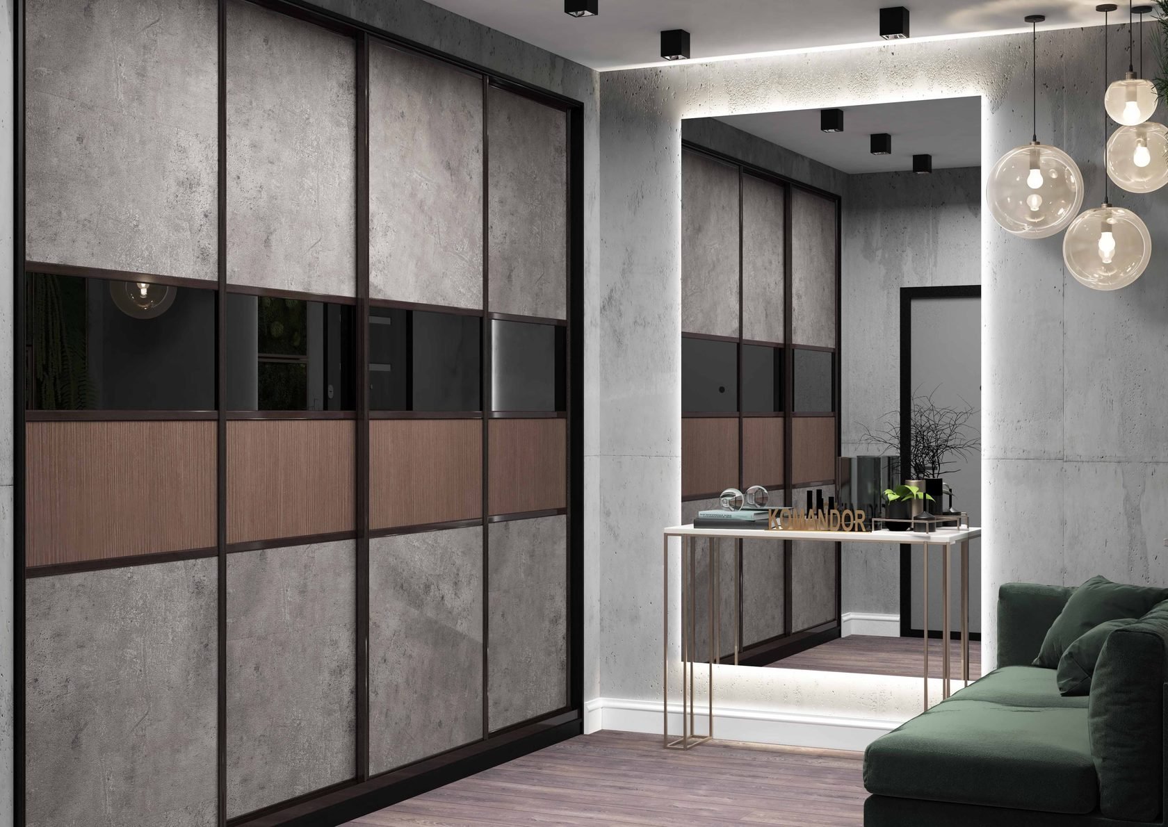 Шкаф купе под бетон в интерьере