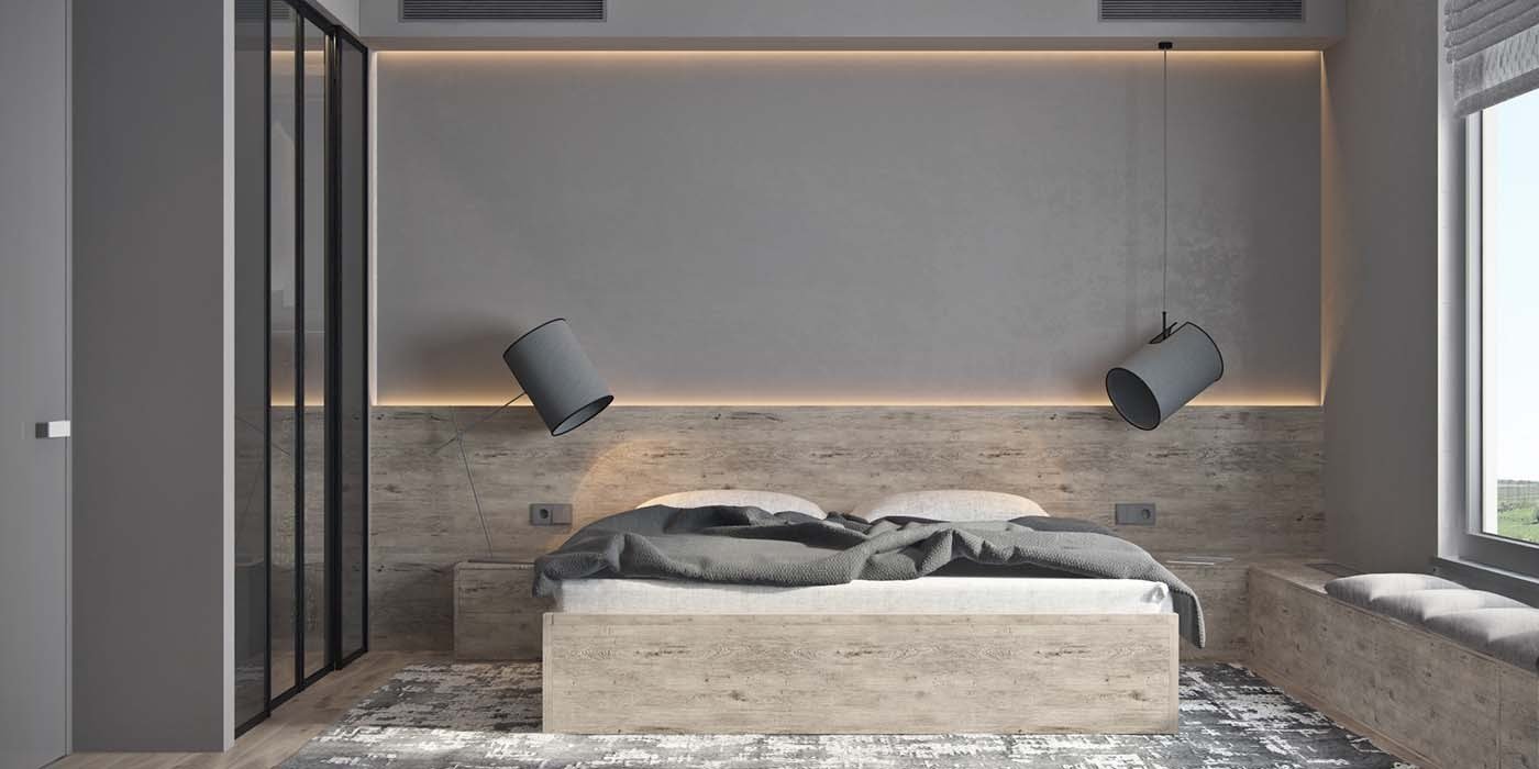 Спальня Минимализм бетон