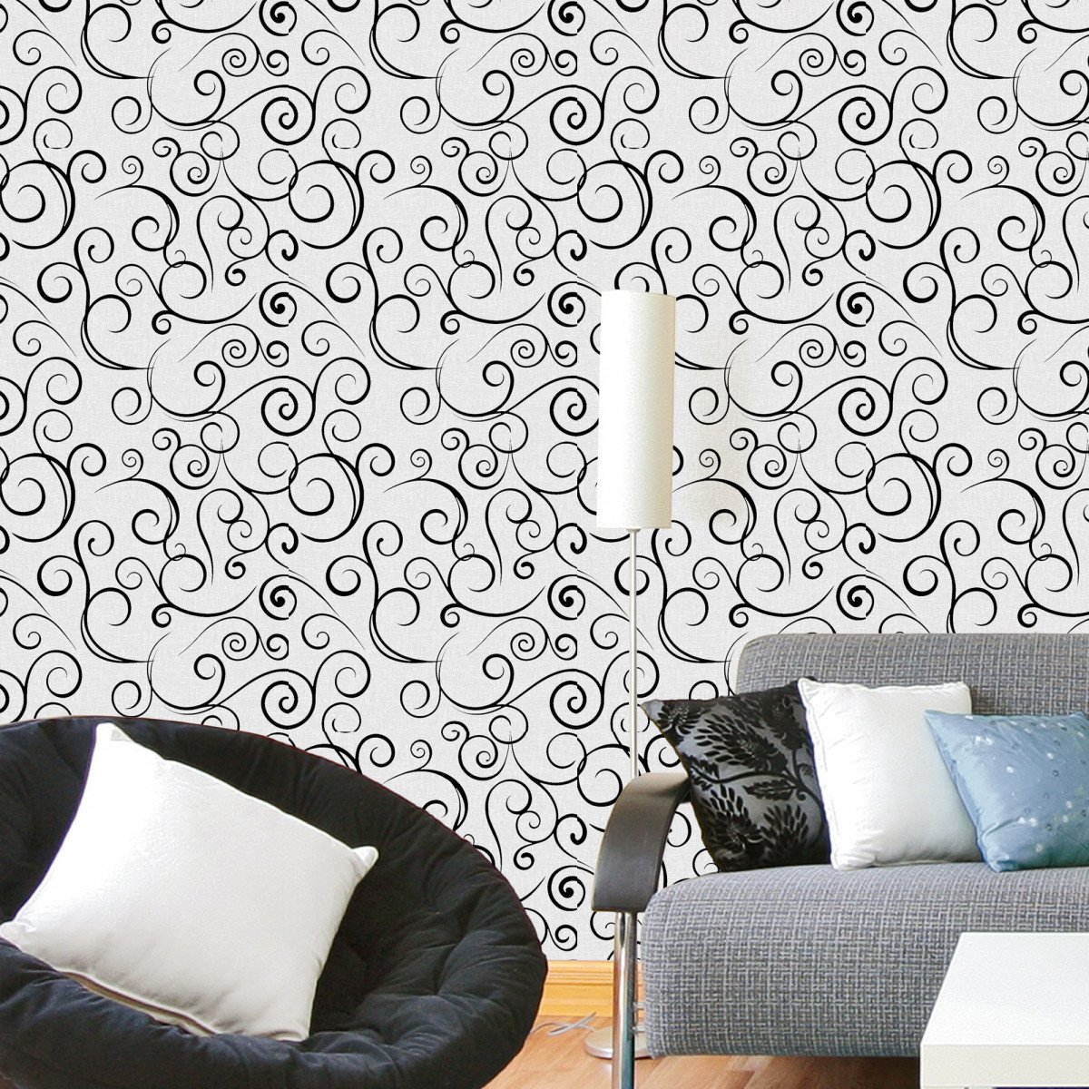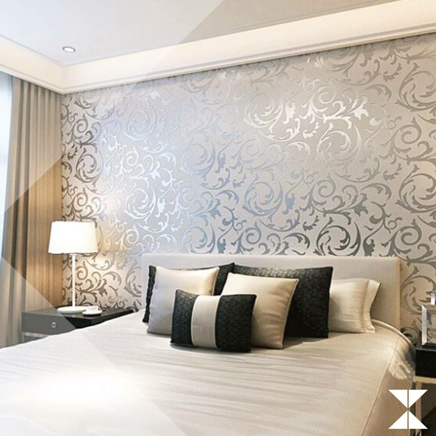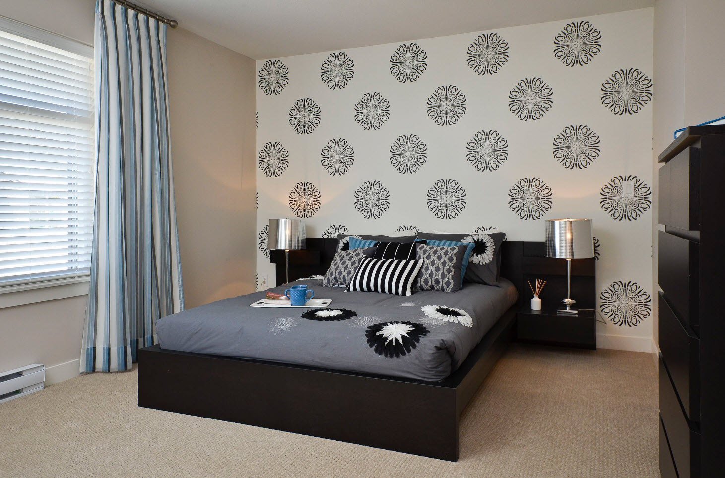 Обои для спальни белые с черным узором