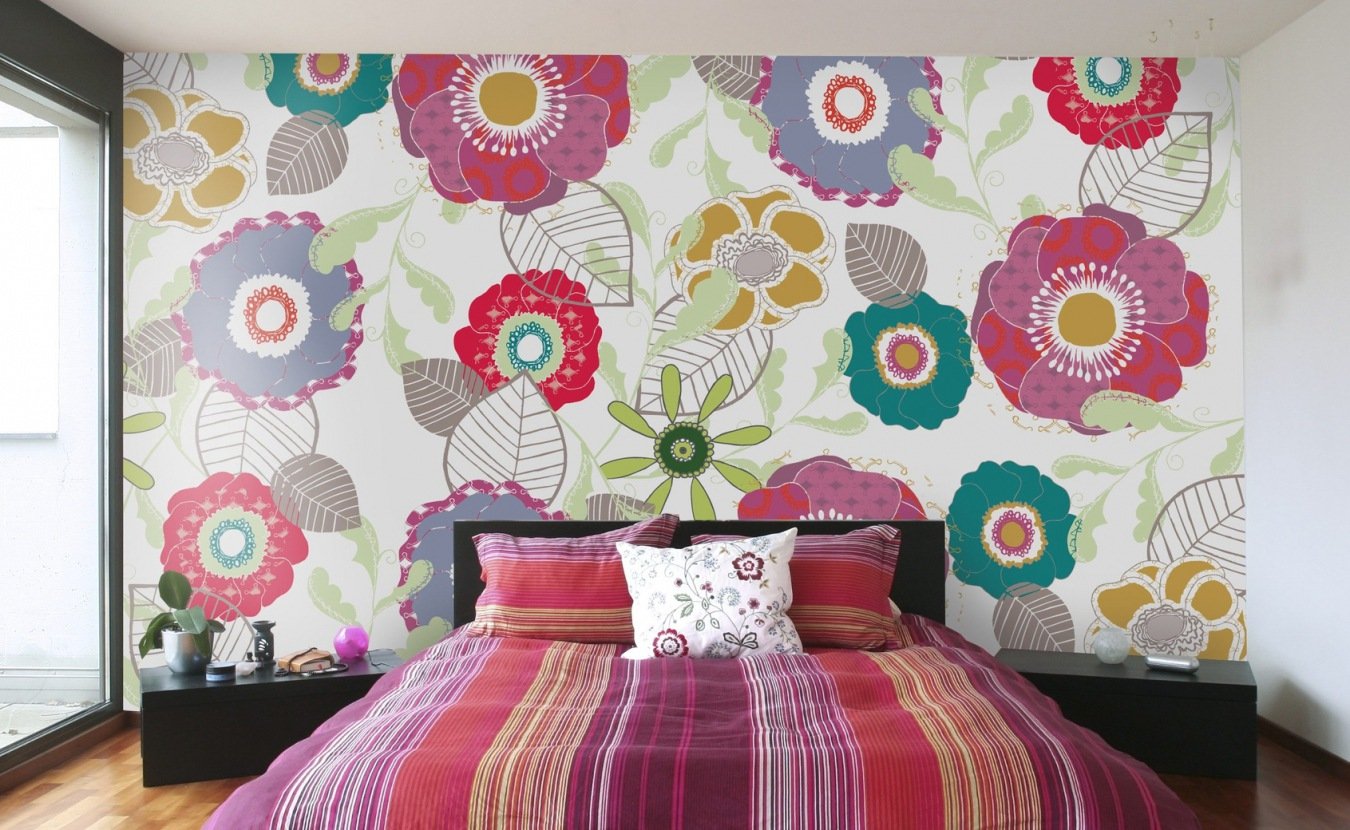 Яркие обои в спальню