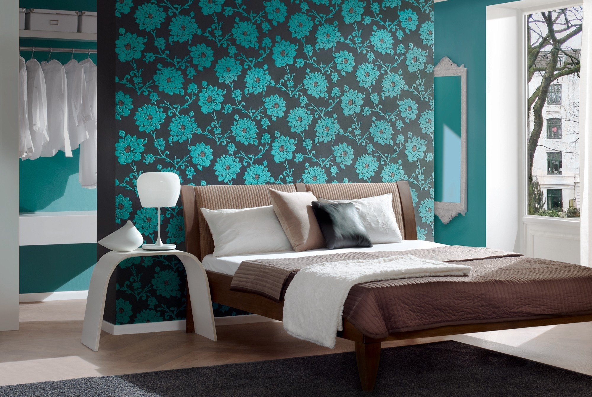 Бирюза в интерьере спальни