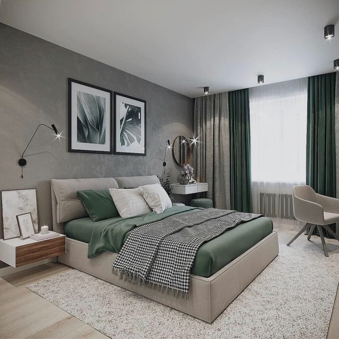 Темно зеленая спальня