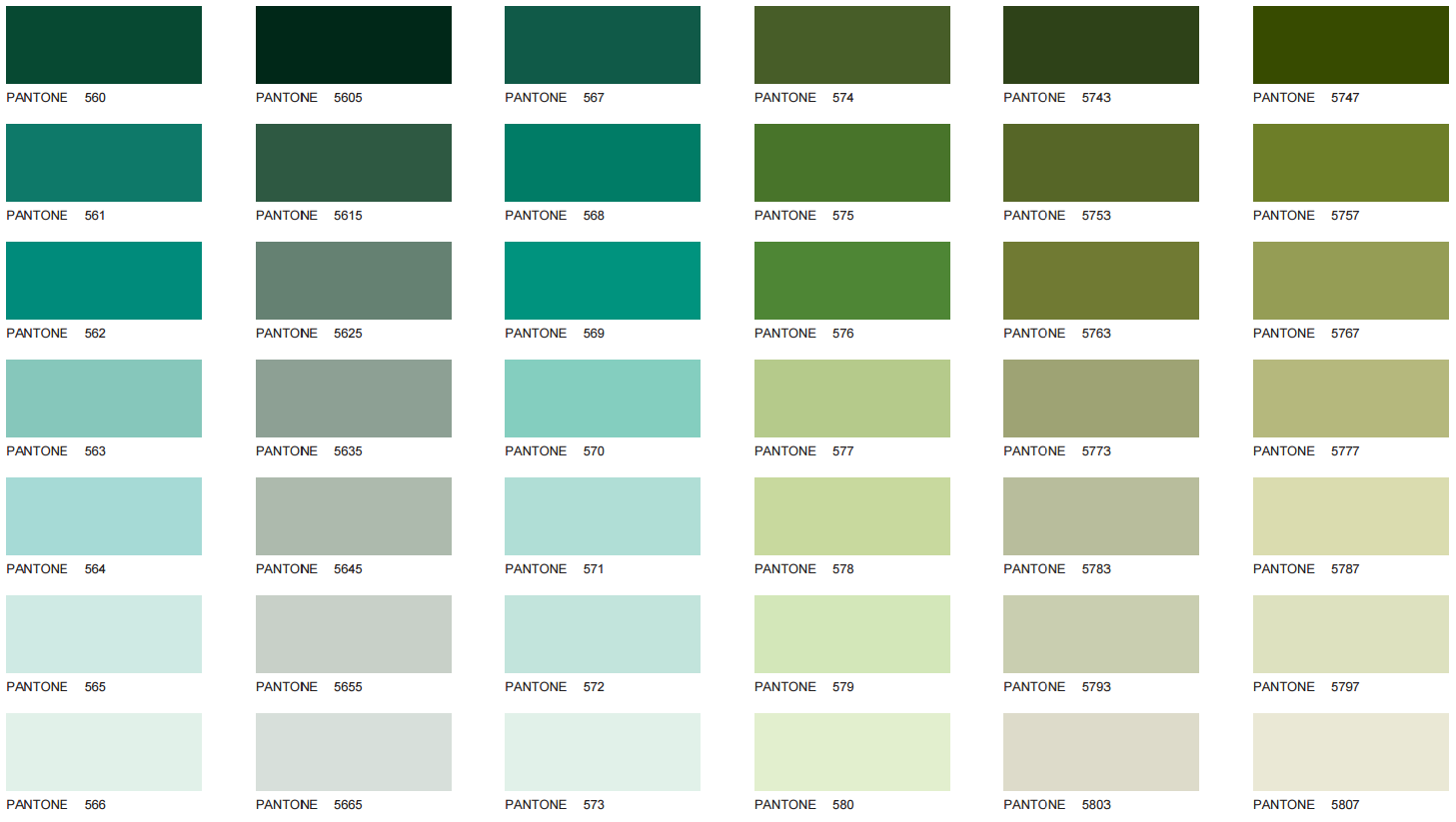 Цветовая палитра зеленых оттенков