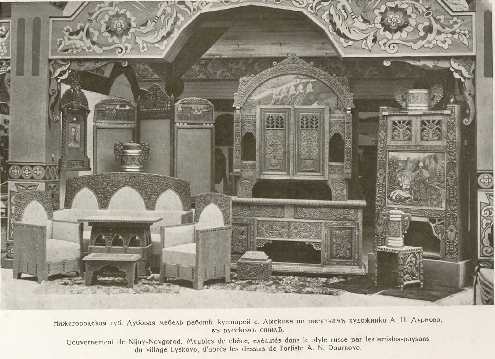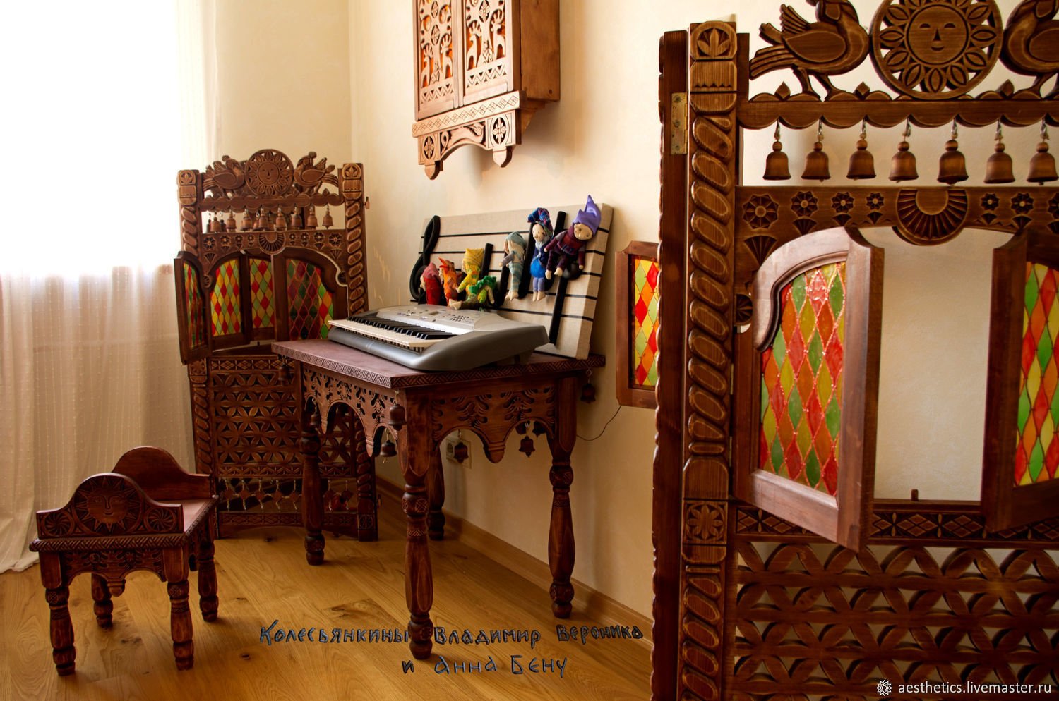 Мебель в русском стиле Абрамцево-Кудринская резьба в мебели