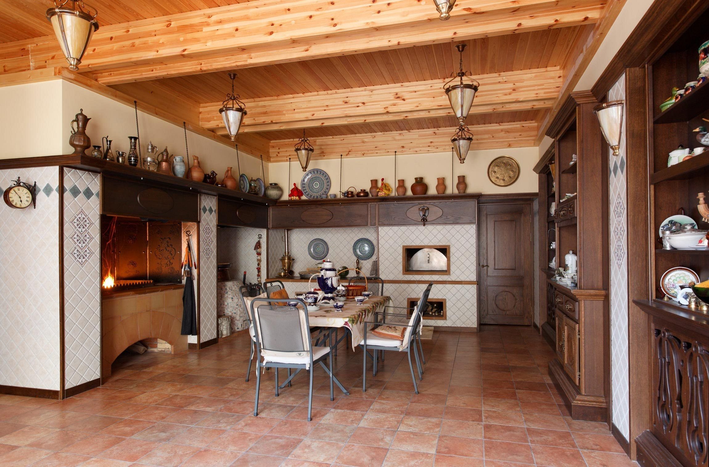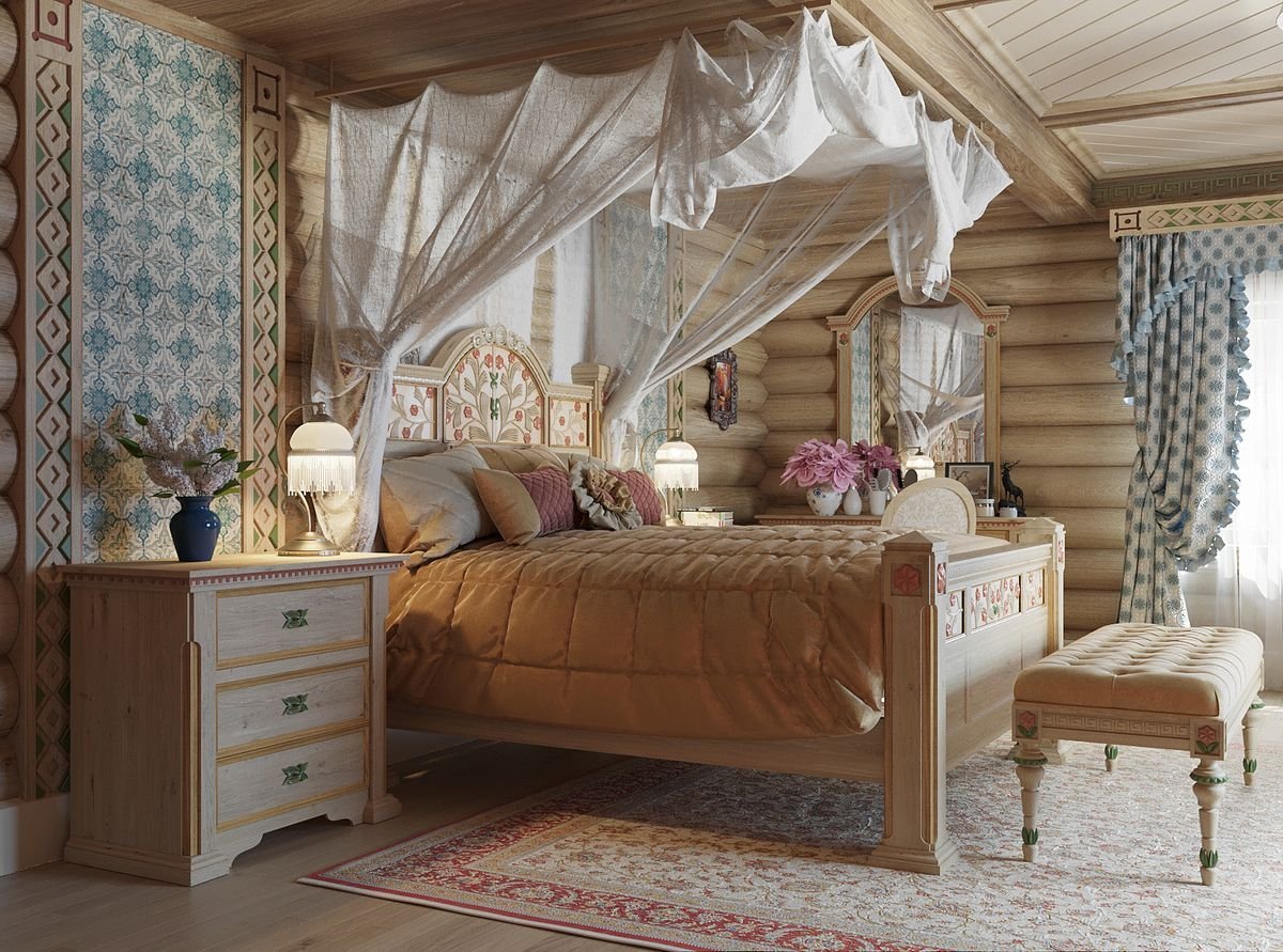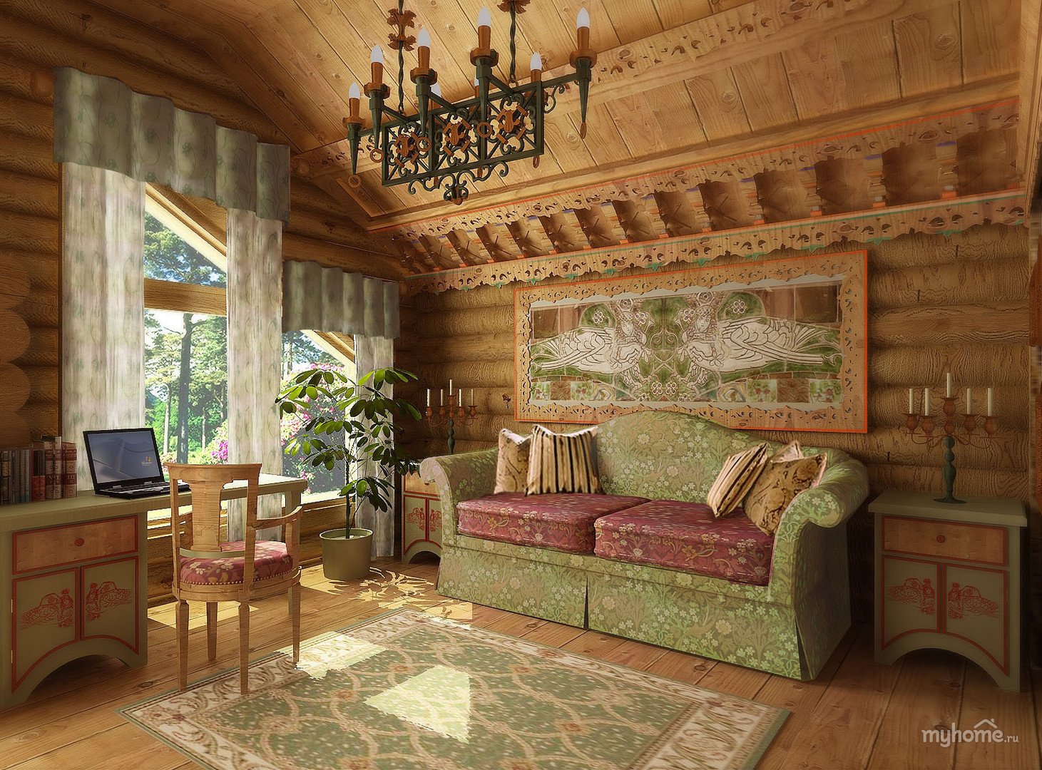 Интерьер в стиле русская усадьба в бревенчатом доме
