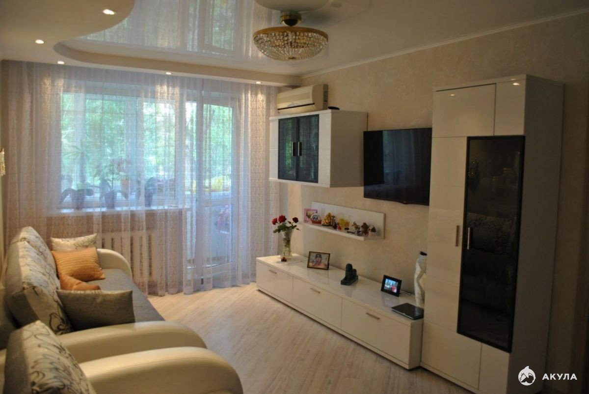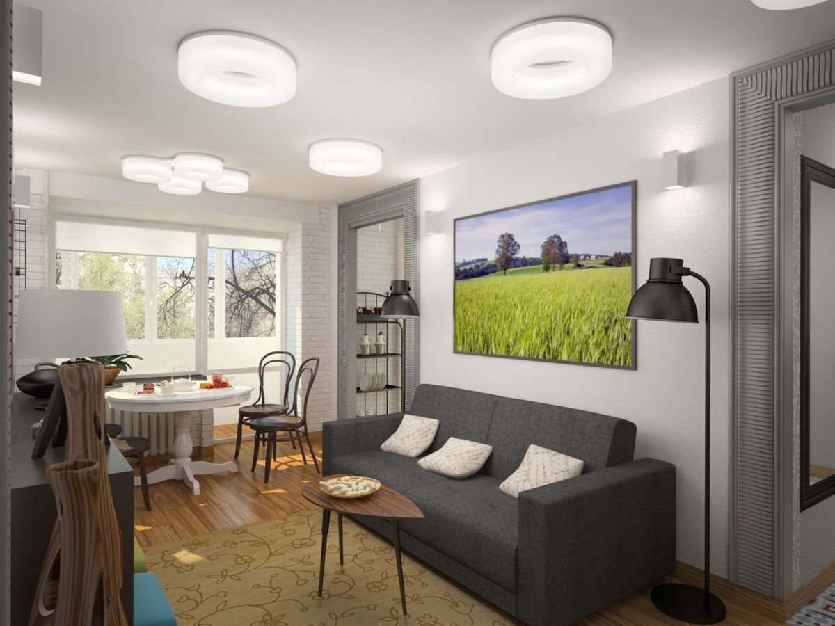Гостиная с балконом в хрущевке