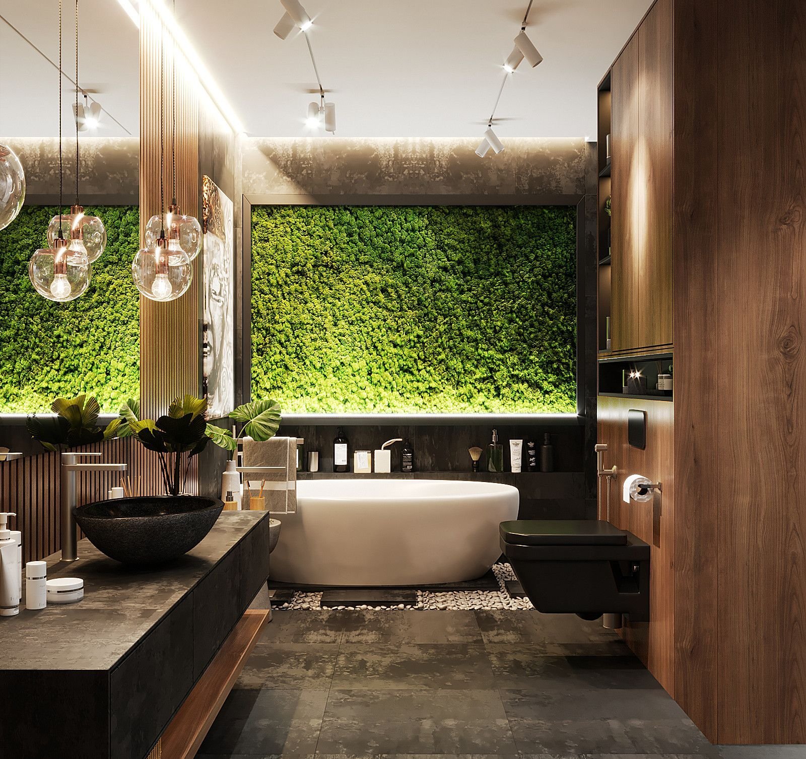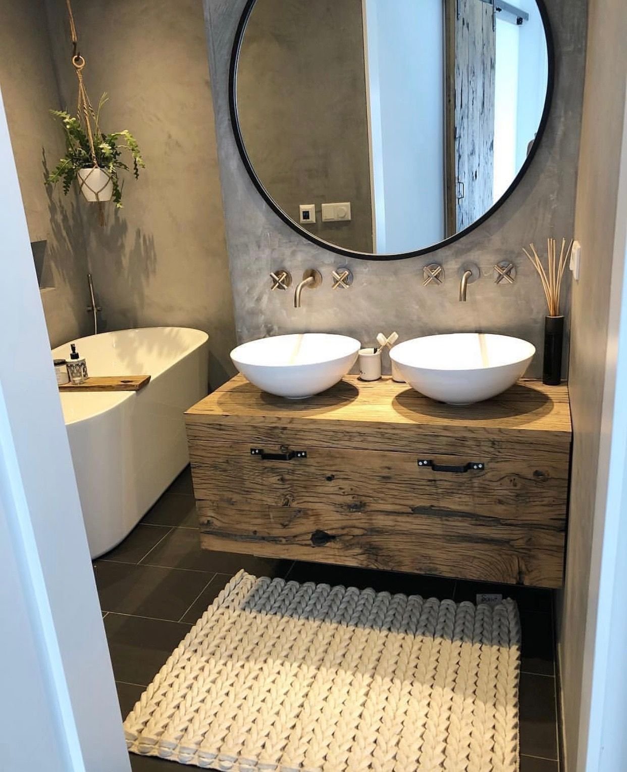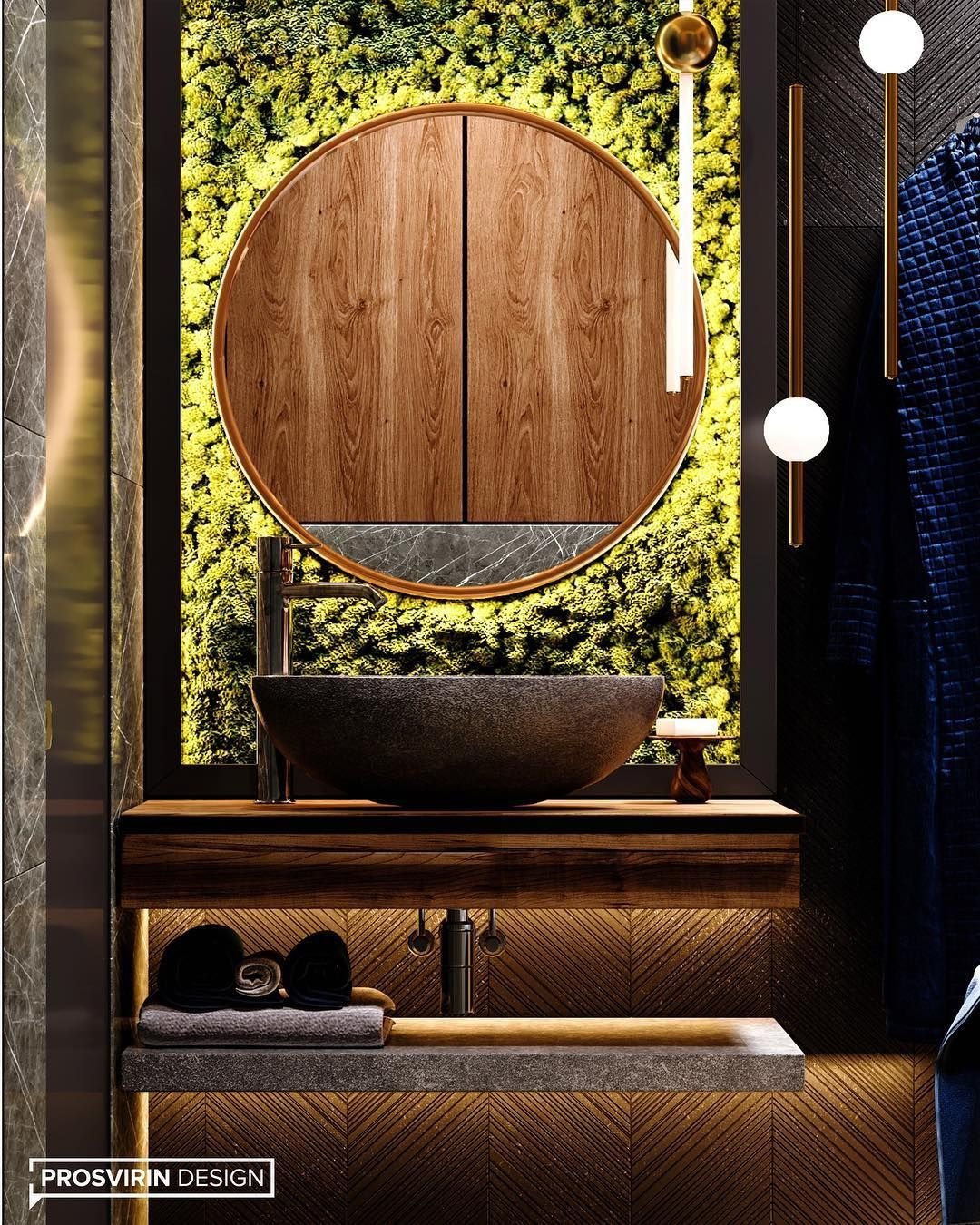 Ванная комната дерево и камень экостиль