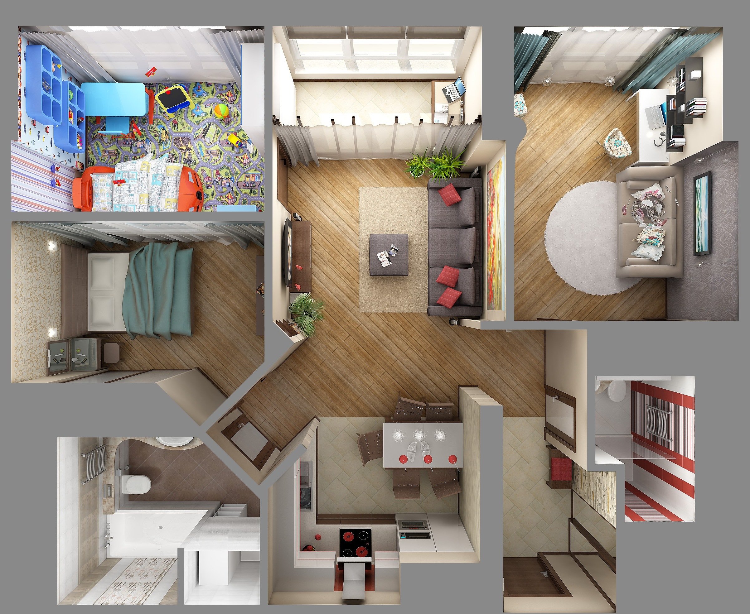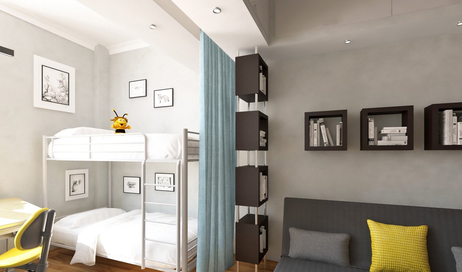 Зонирование однокомнатной квартиры для семьи с 2 детьми