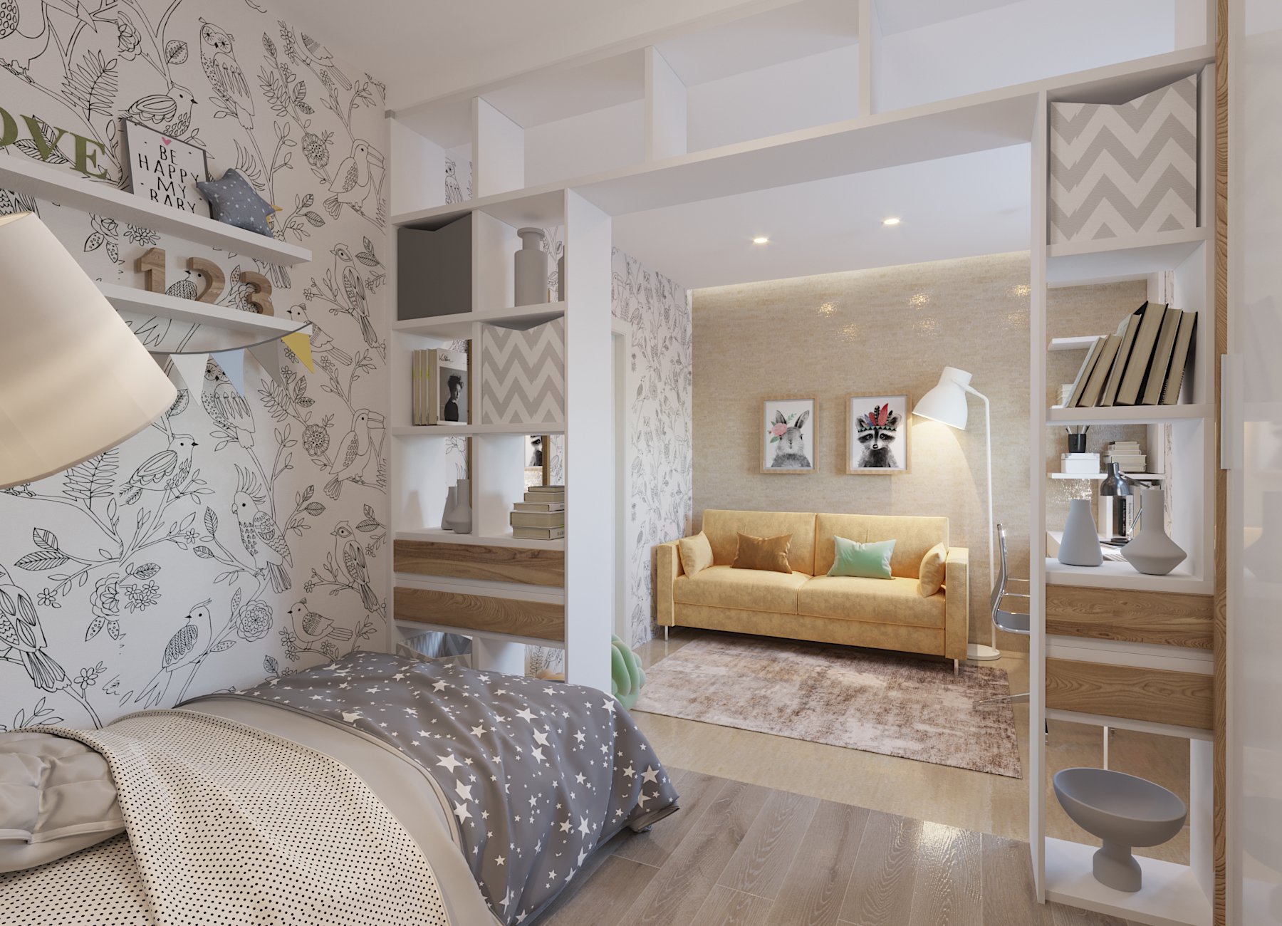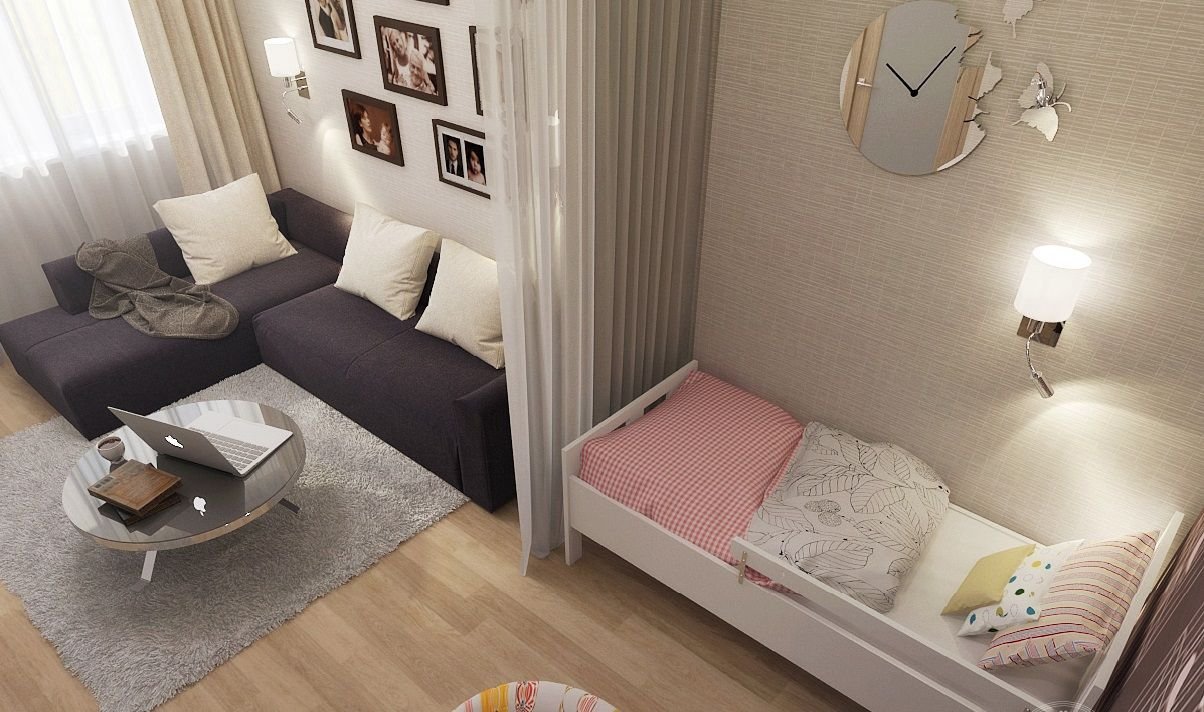 Зонирование комнаты 20 кв.м на детскую и гостиную