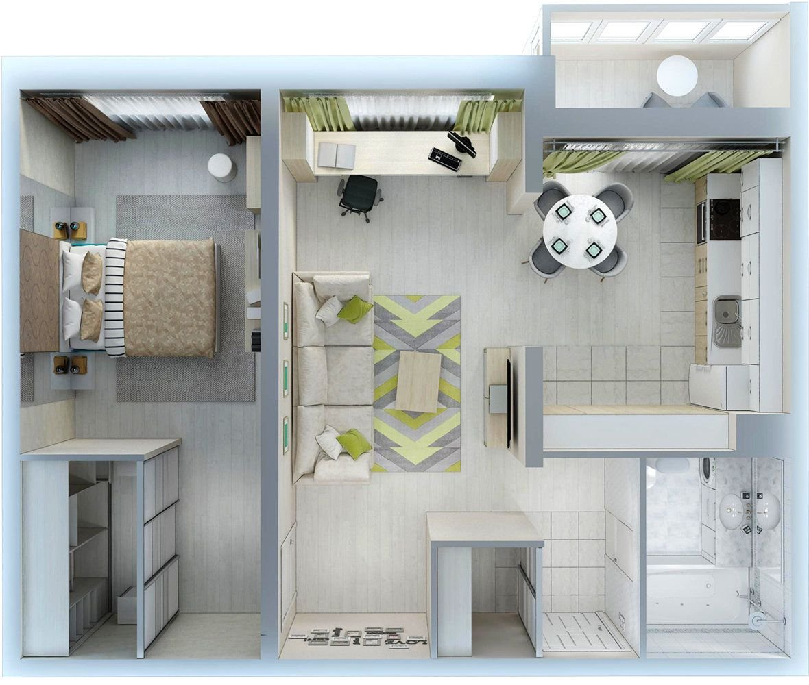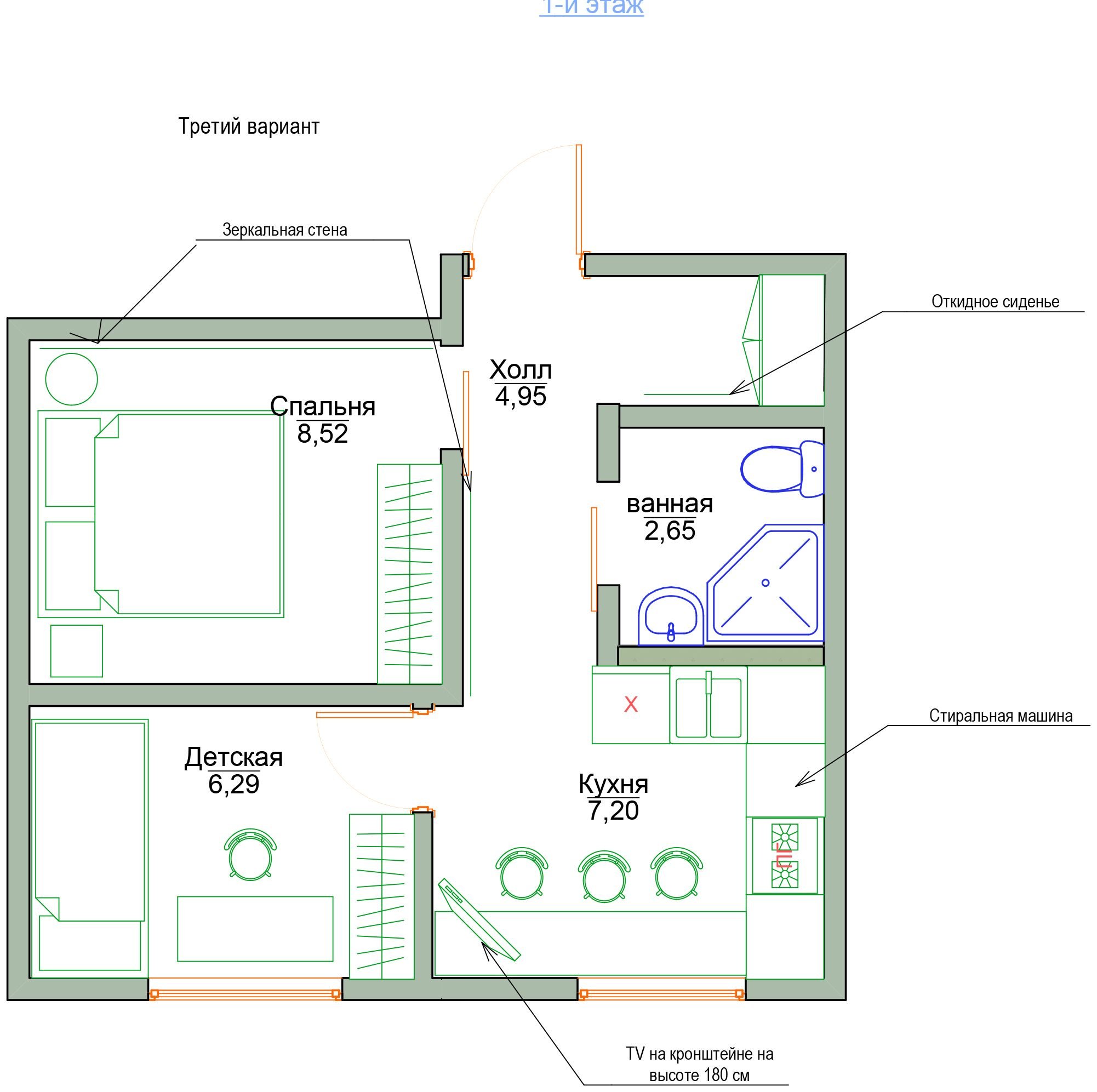 Планировка 1 комнатной квартиры 30 кв.м для семьи с ребенком