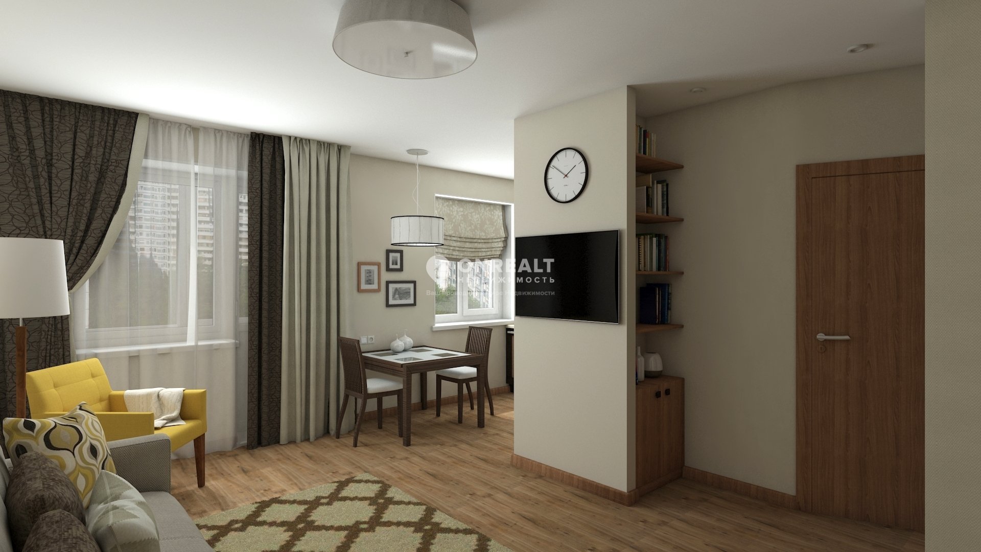 Интерьер 2 комнатной квартиры 44 кв.м