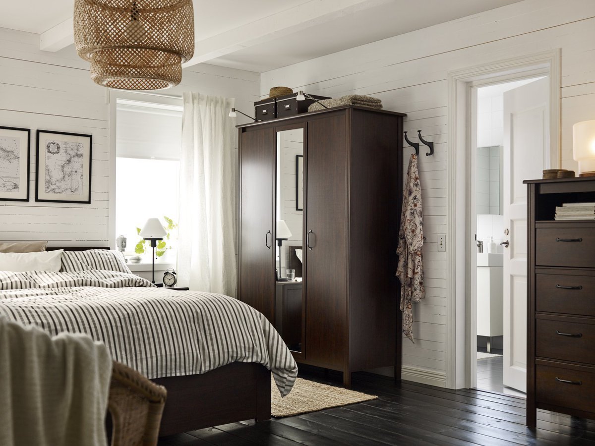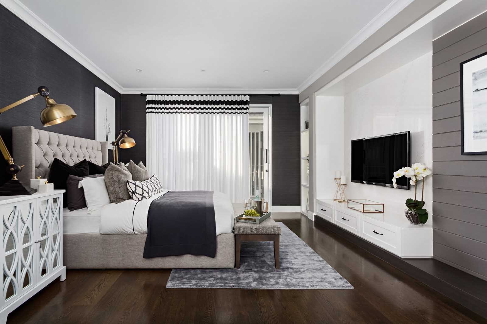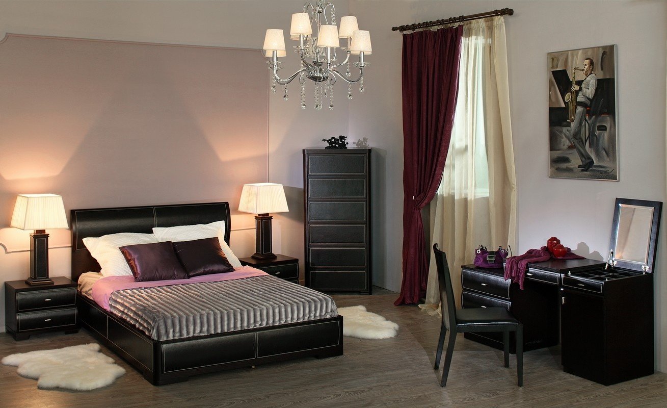 Спальня с темной мебелью