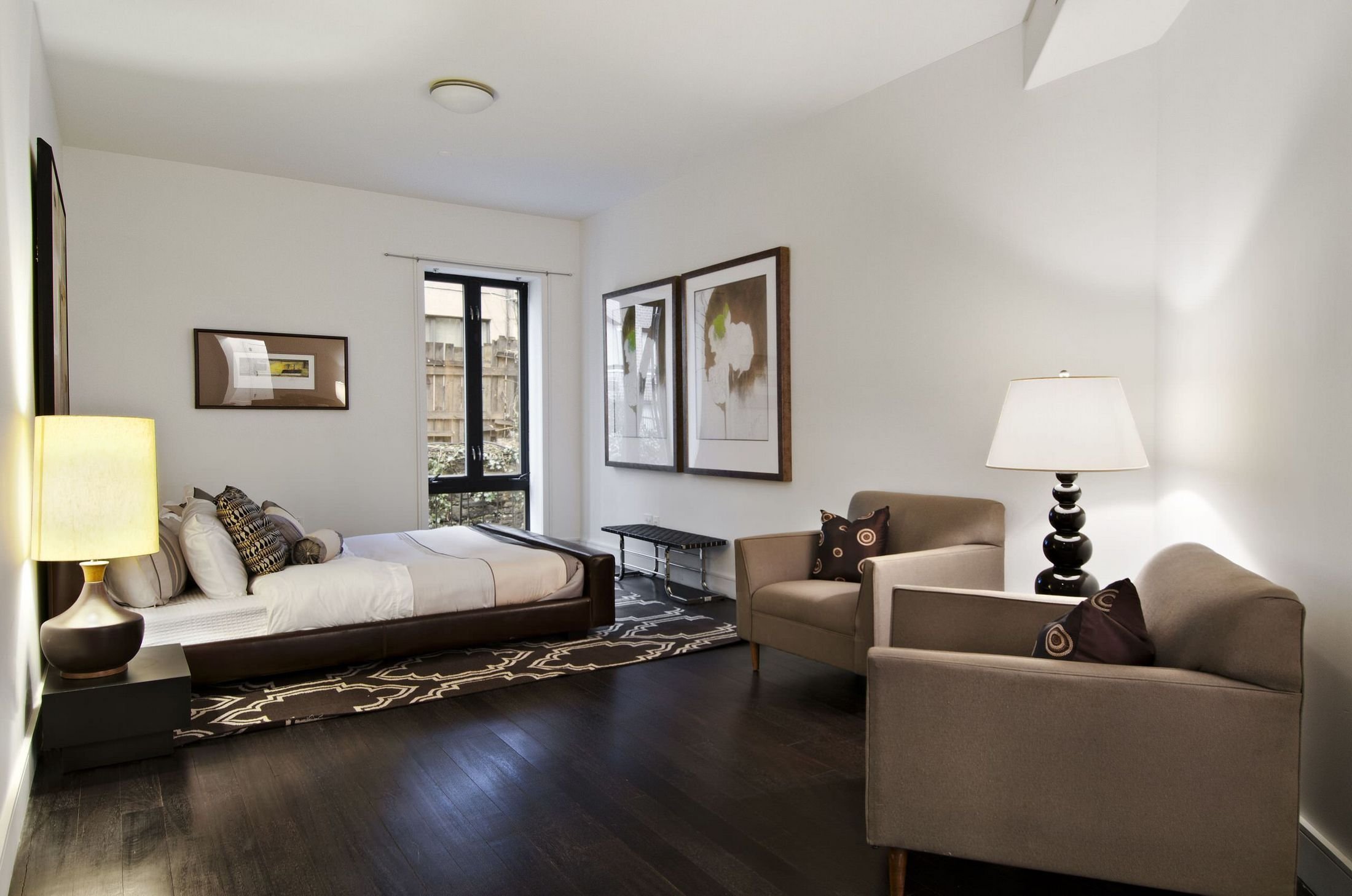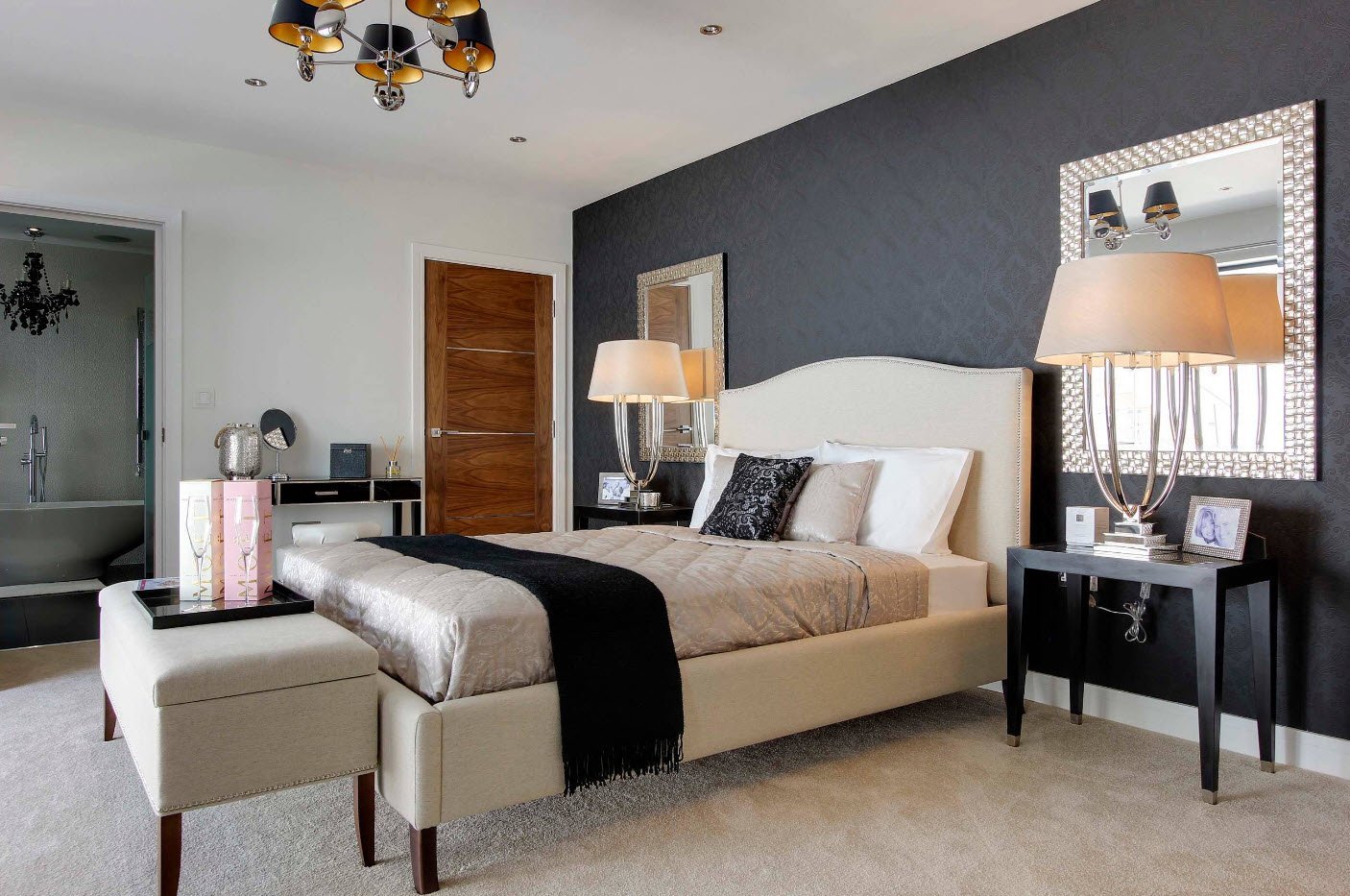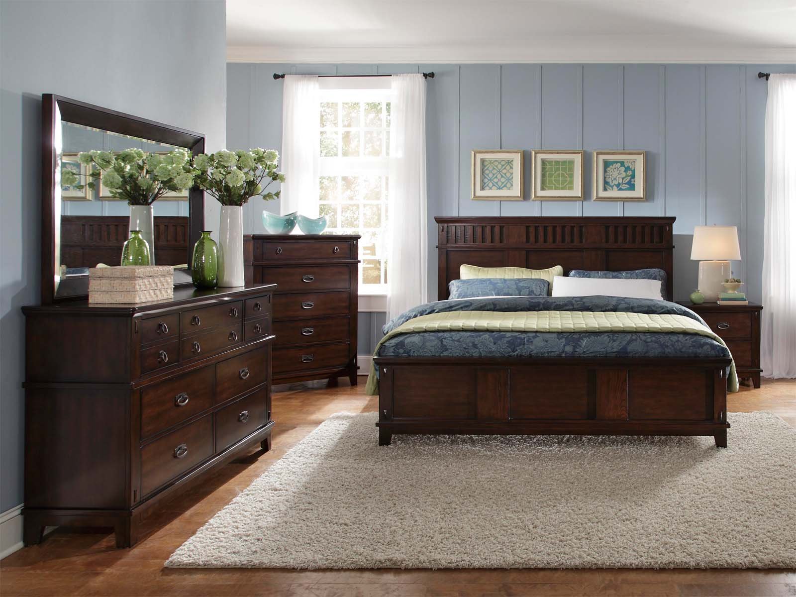 Спальня с темной мебелью