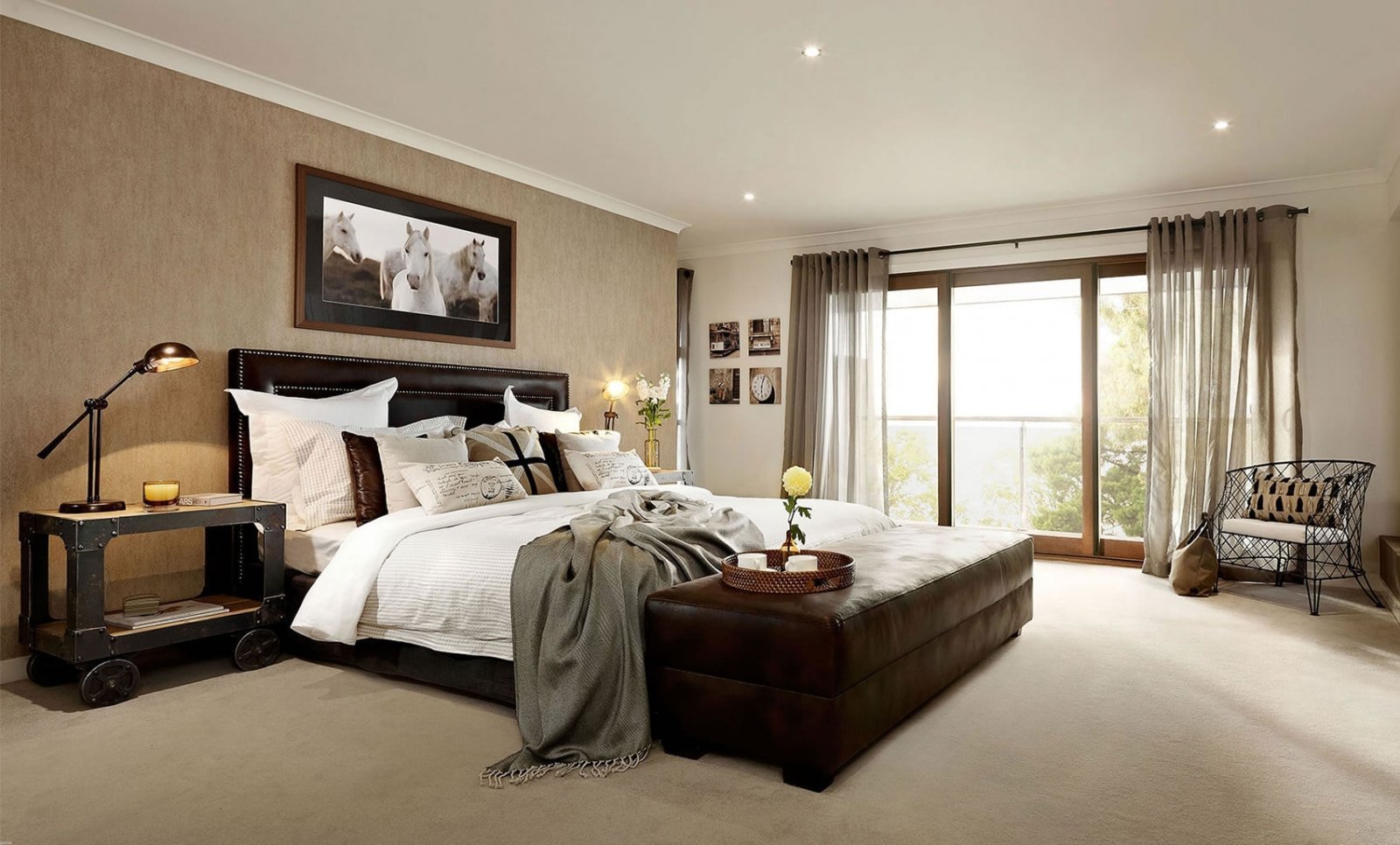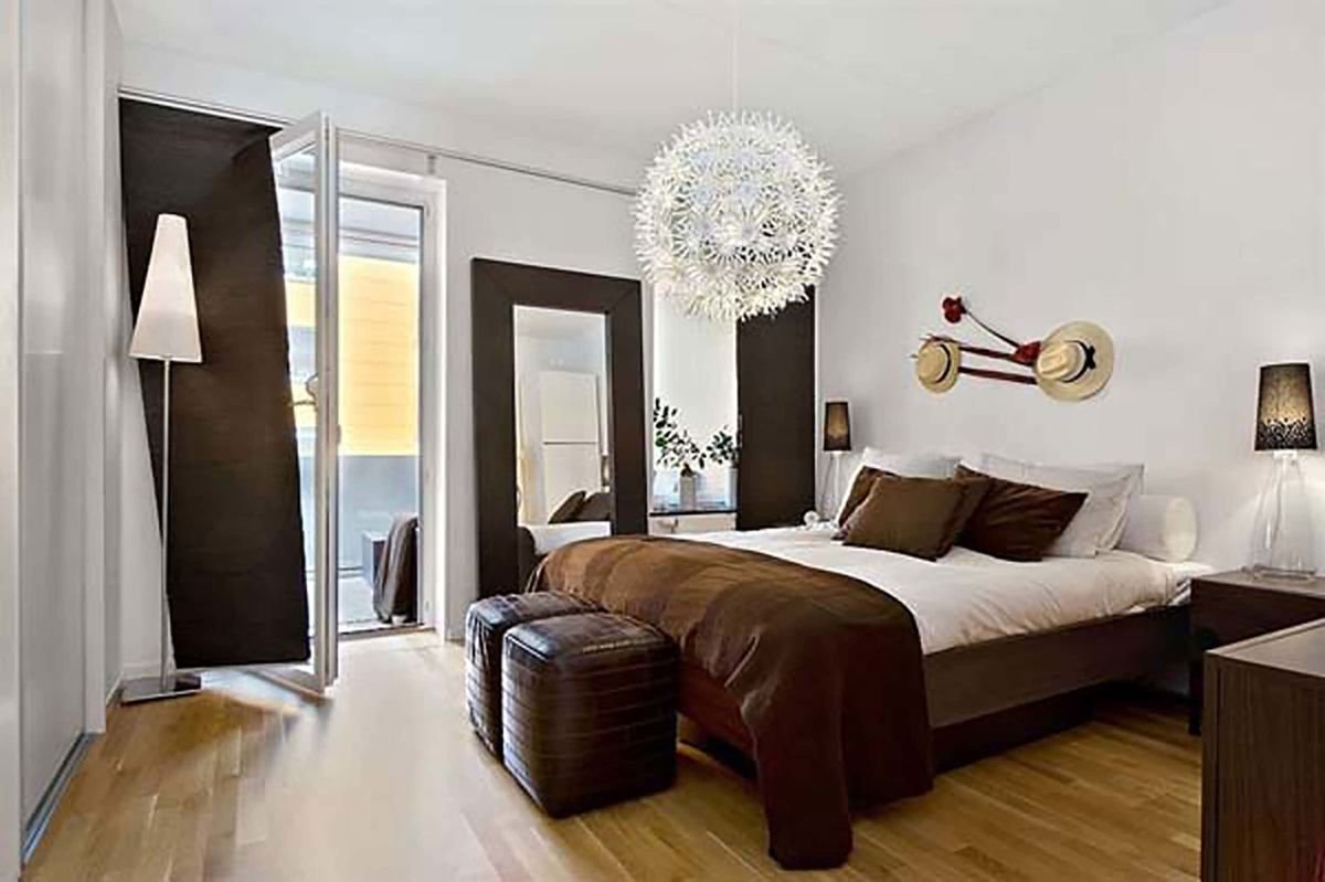 Спальня в бело коричневых тонах