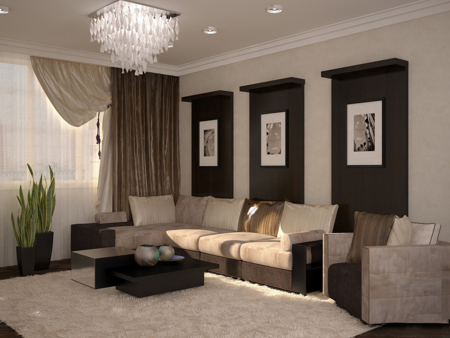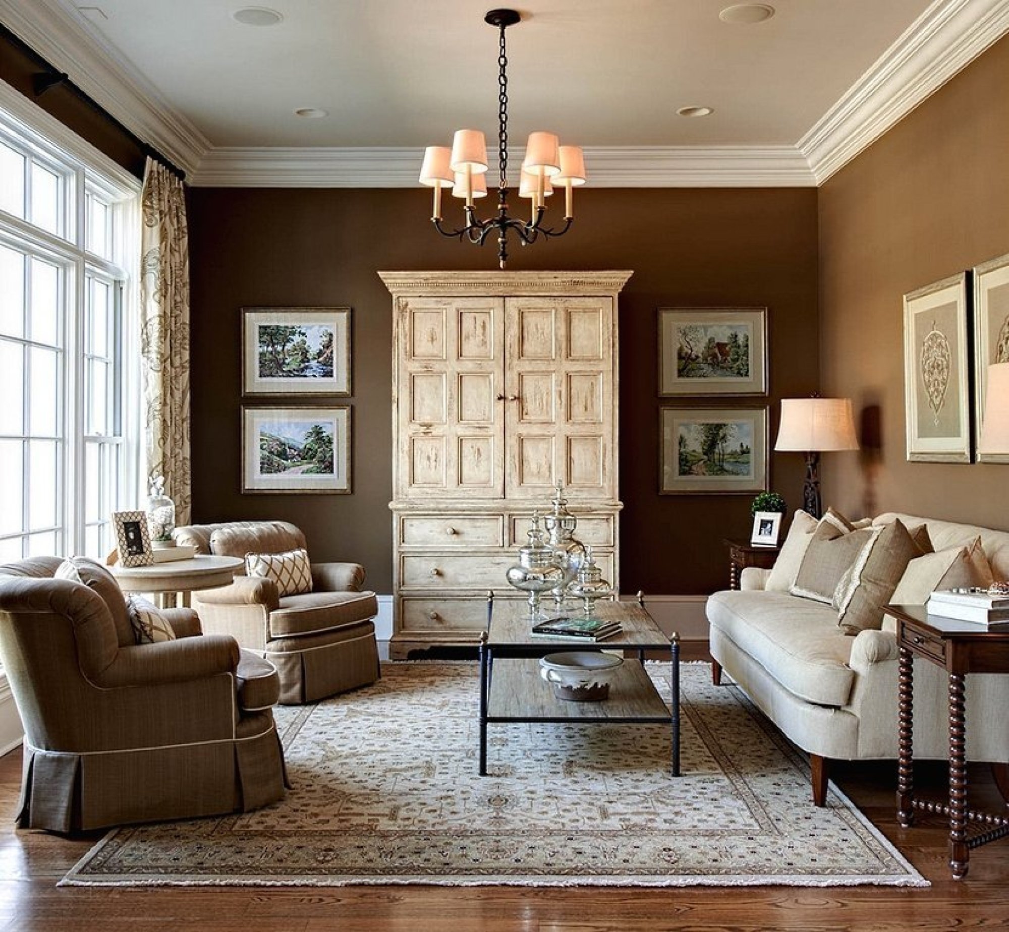 Гостиная в коричневых тонах