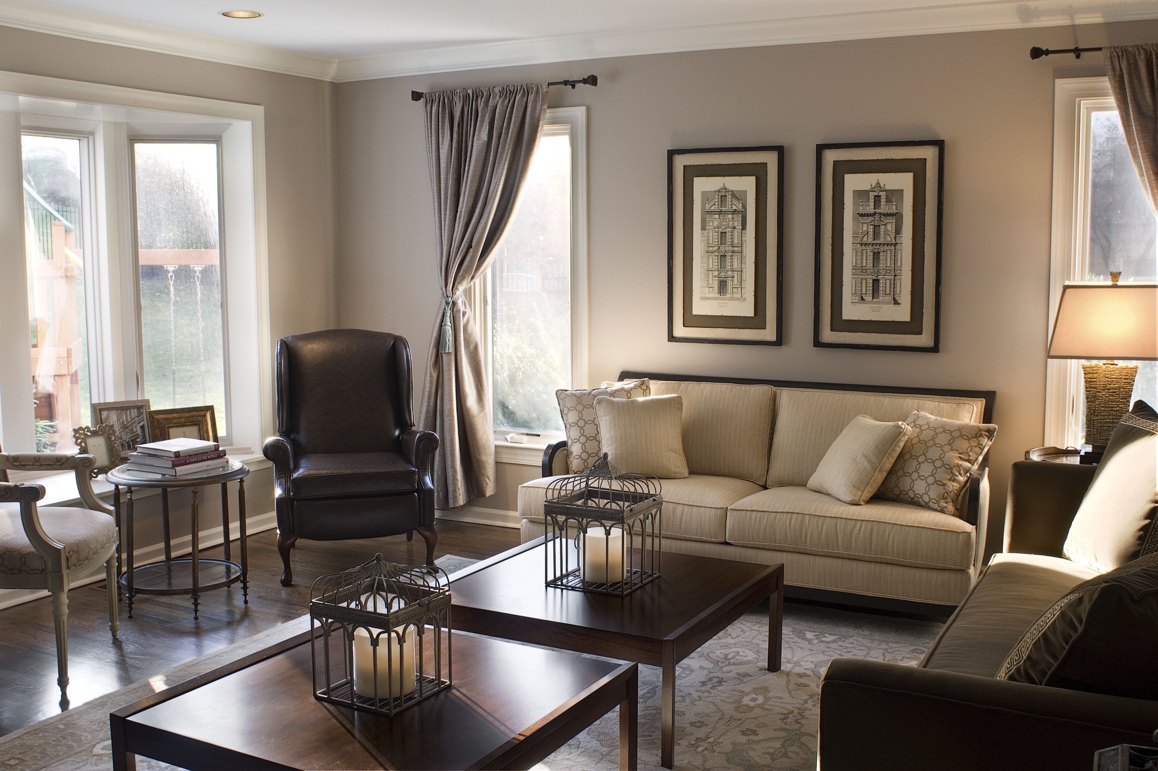 Кофейные стены в гостиной