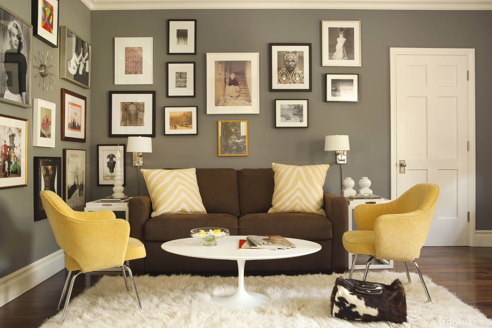Коричневые стены в интерьере гостиной