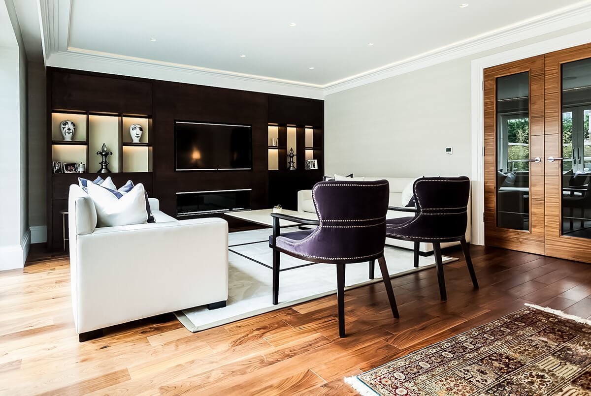 Темная мебель в интерьере гостиной