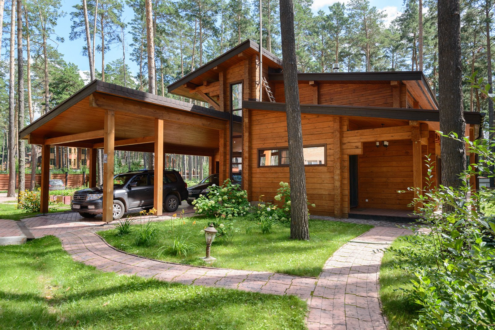 Деревянный дом в соснах