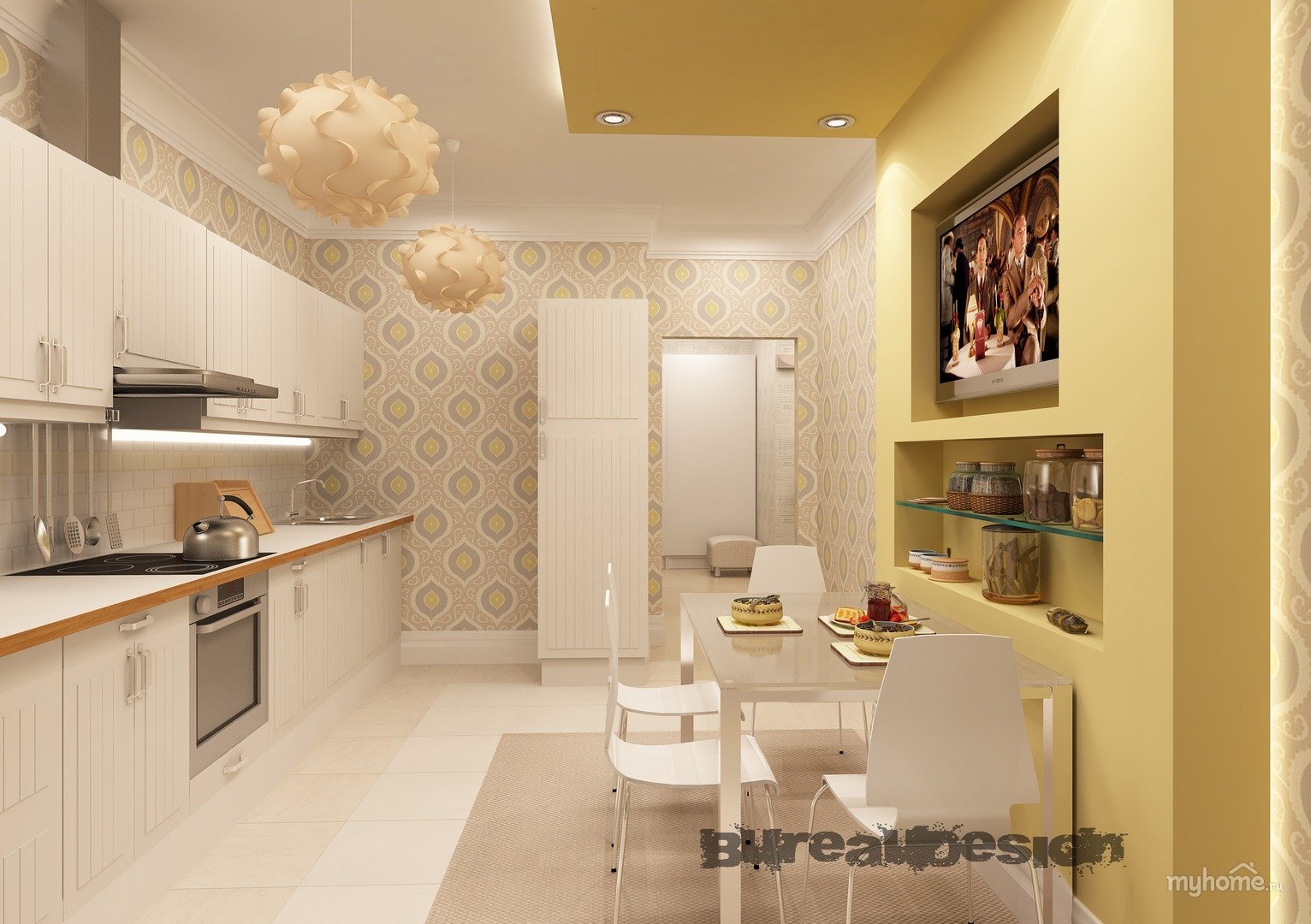 Интерьер кухни какие обои поклеить