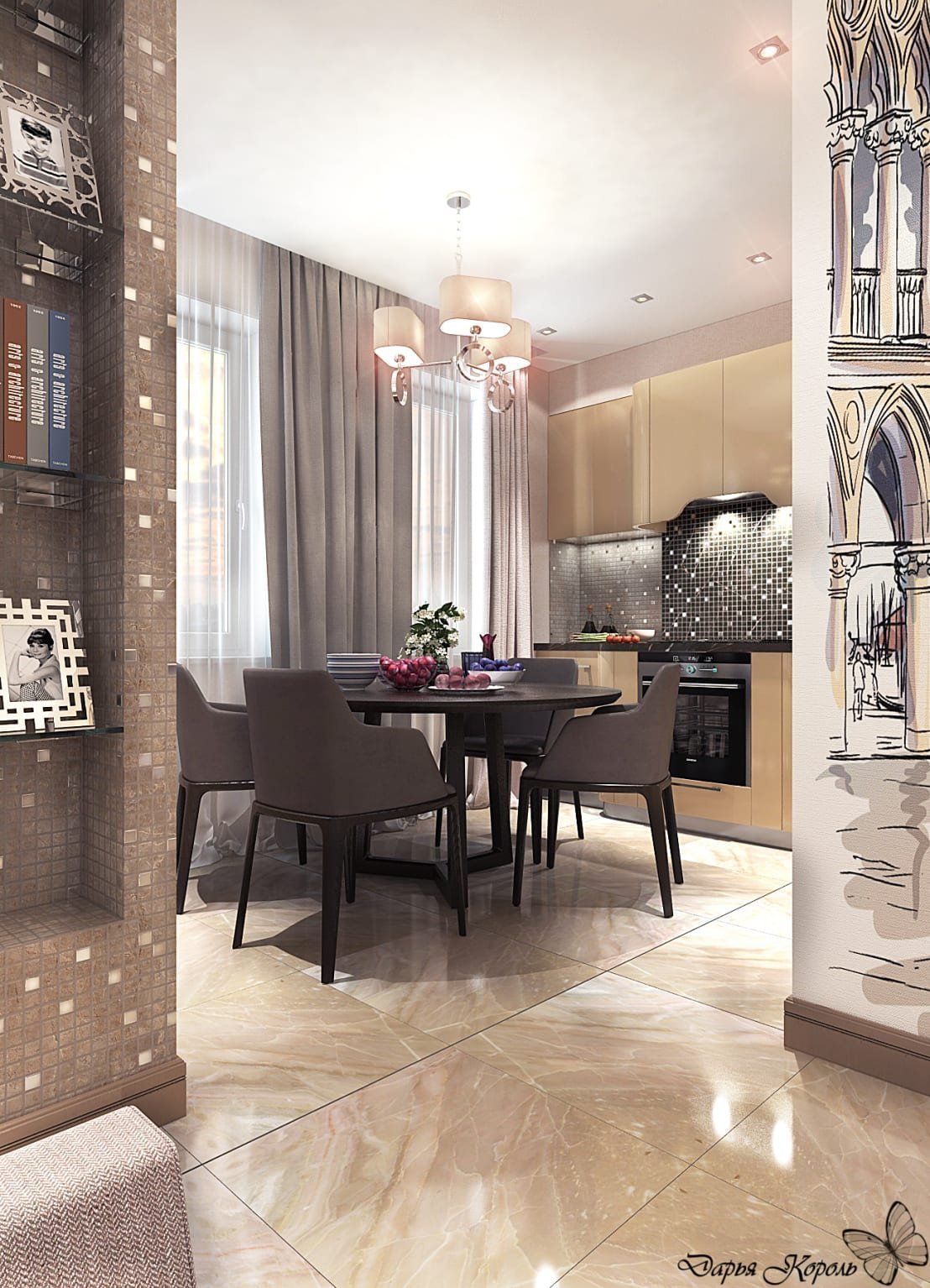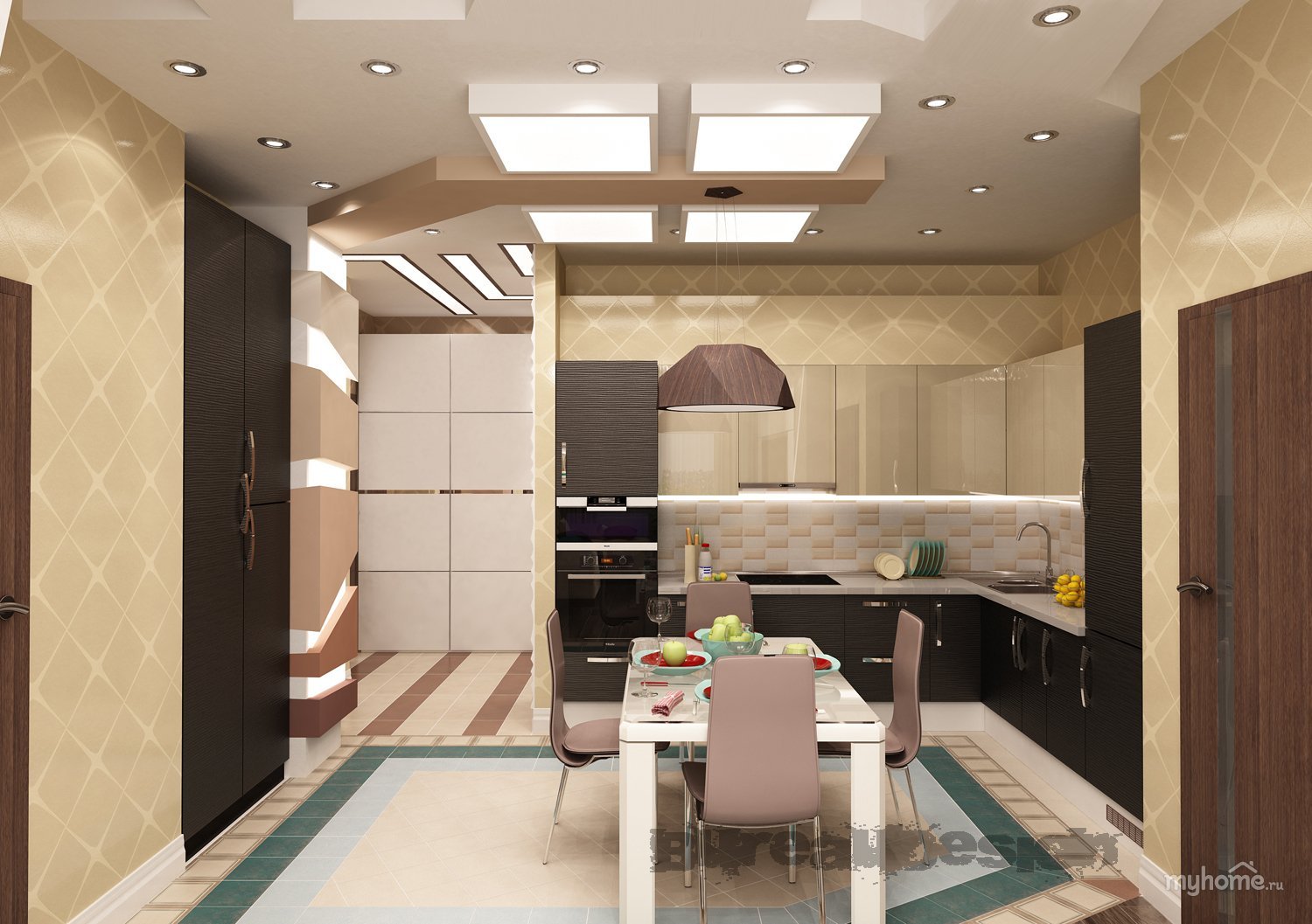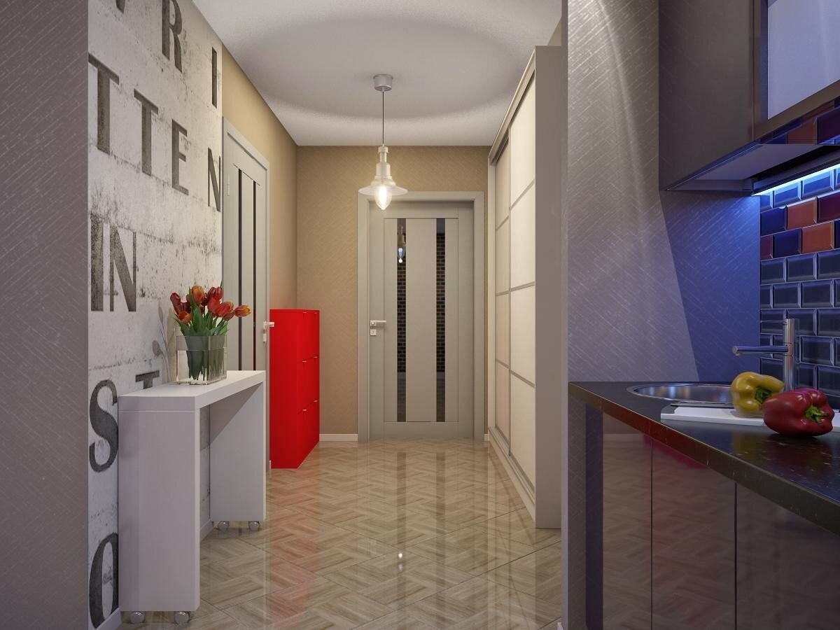 Обои в прихожую совмещенную с кухней
