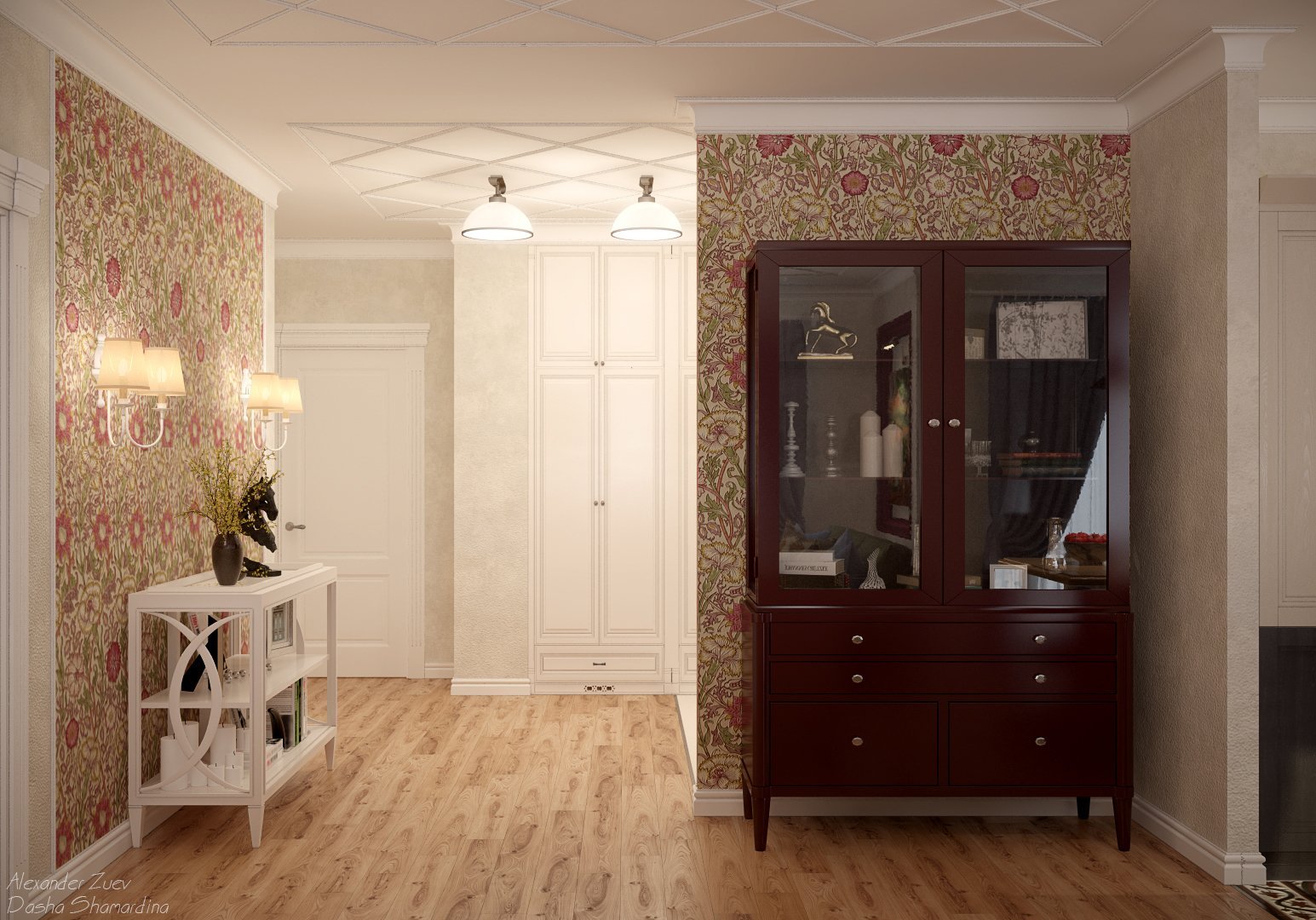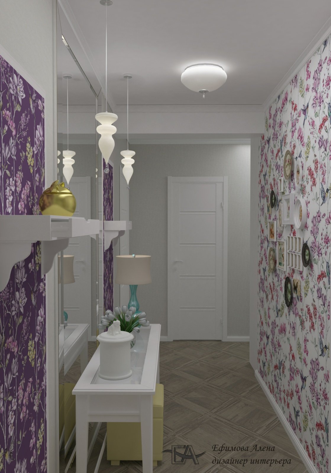 Прихожая с цветочными обоями