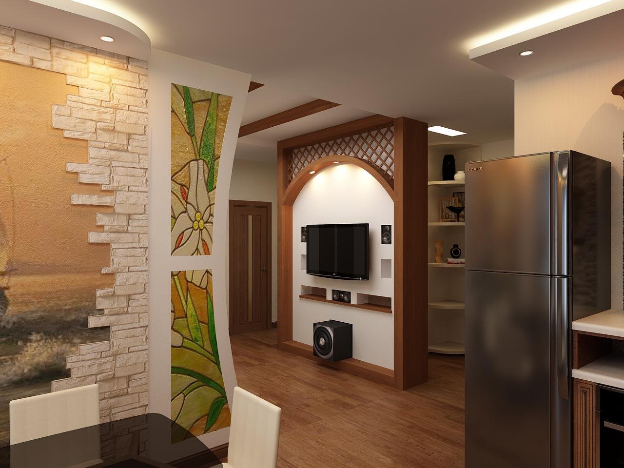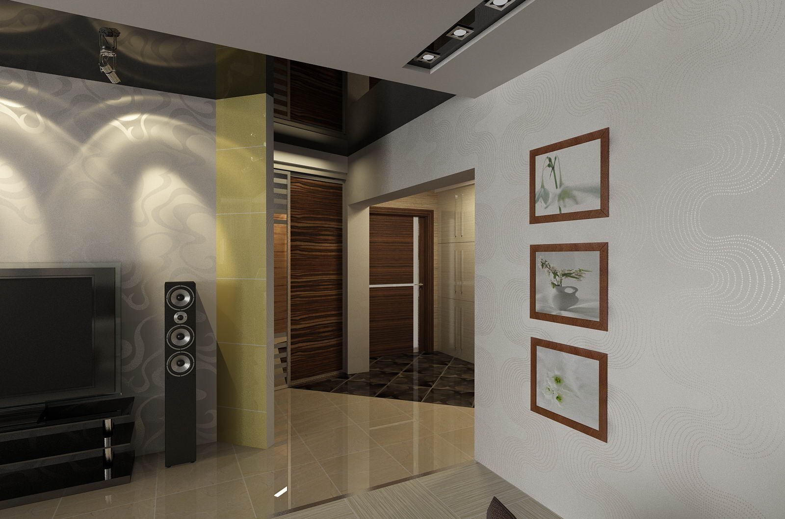 Интерьер гостиной с коридором