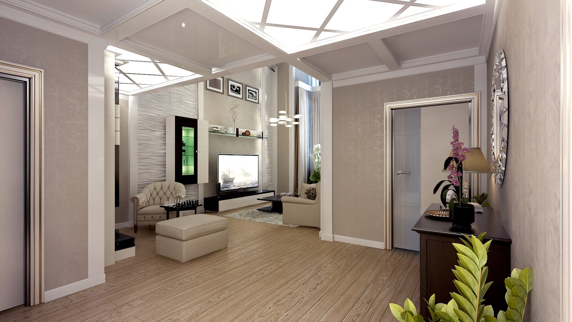 Гостиная и прихожая в одном стиле
