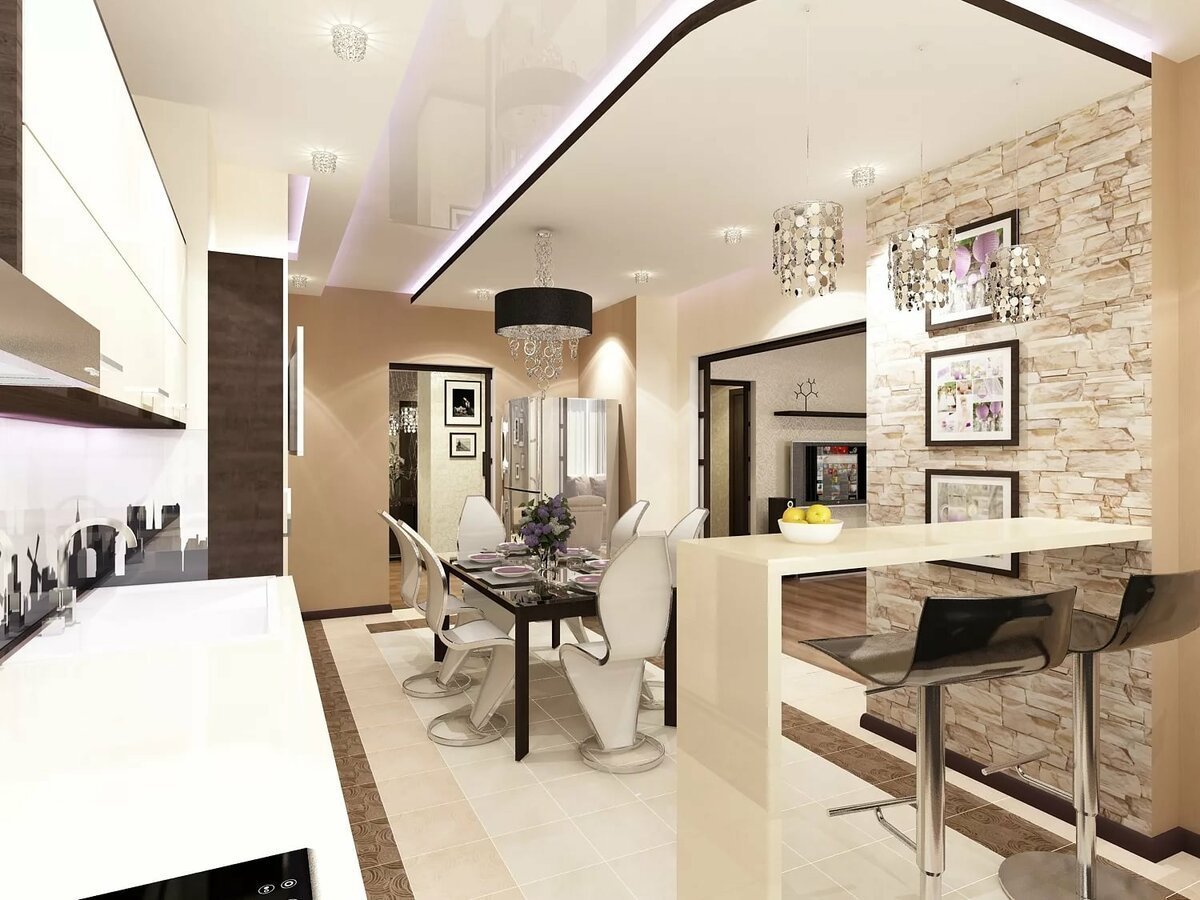 Кухня гостиная Объединенная с коридором