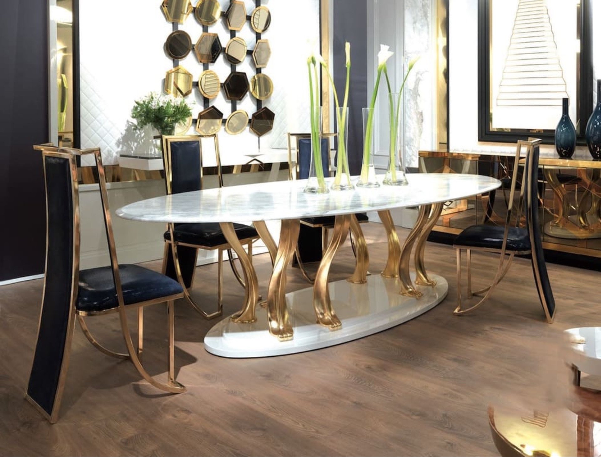 Обеденный стол с латунными ножками