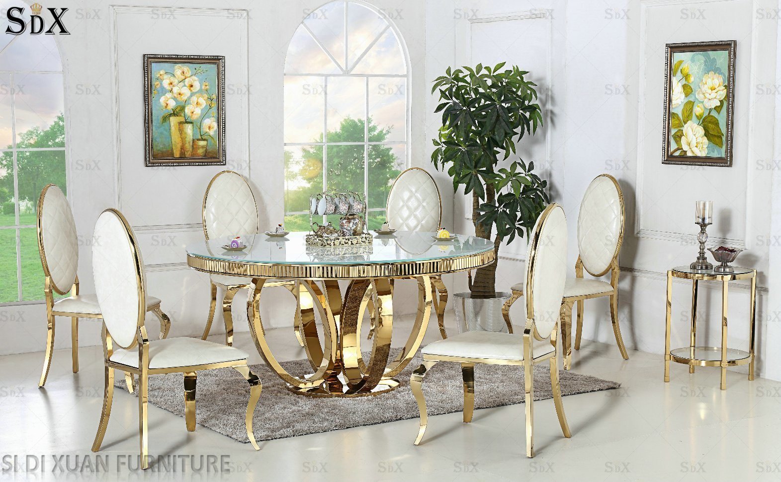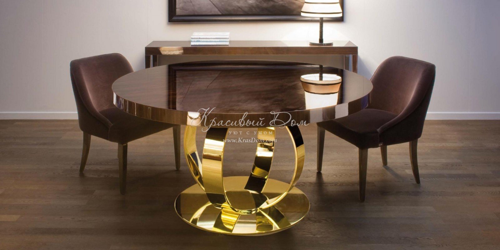 Обеденный стол с золотым подстольем