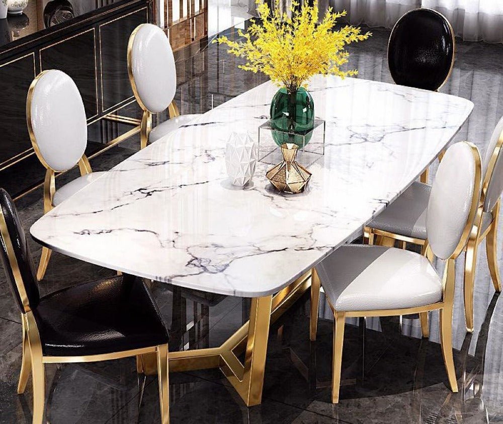 Прямоугольный обеденный стол с золотыми ножками