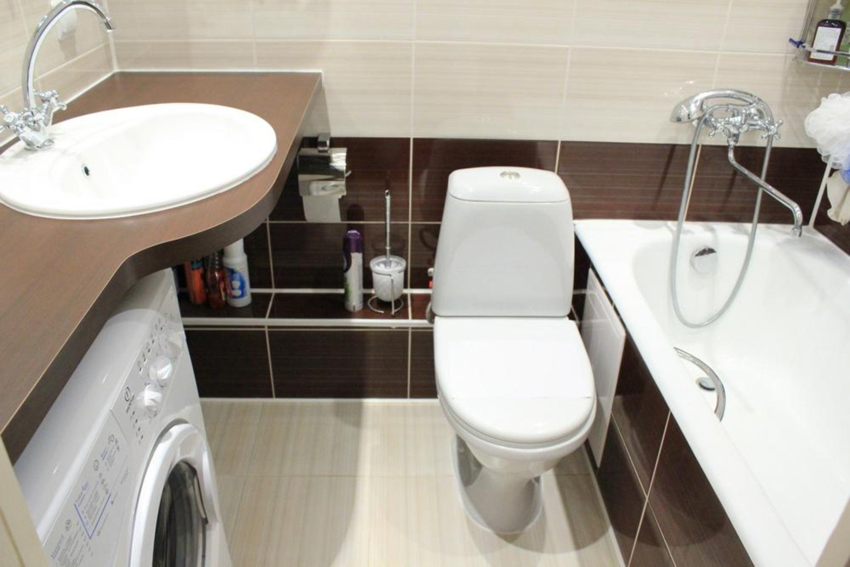 Ванная комната в хрущевке со стиральной машиной и туалетом