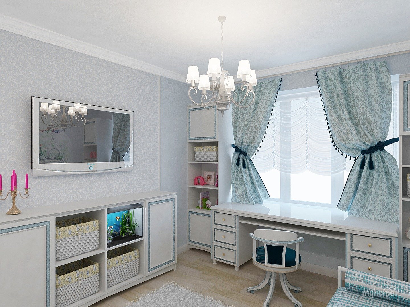 Спальня для девушки с рабочим местом
