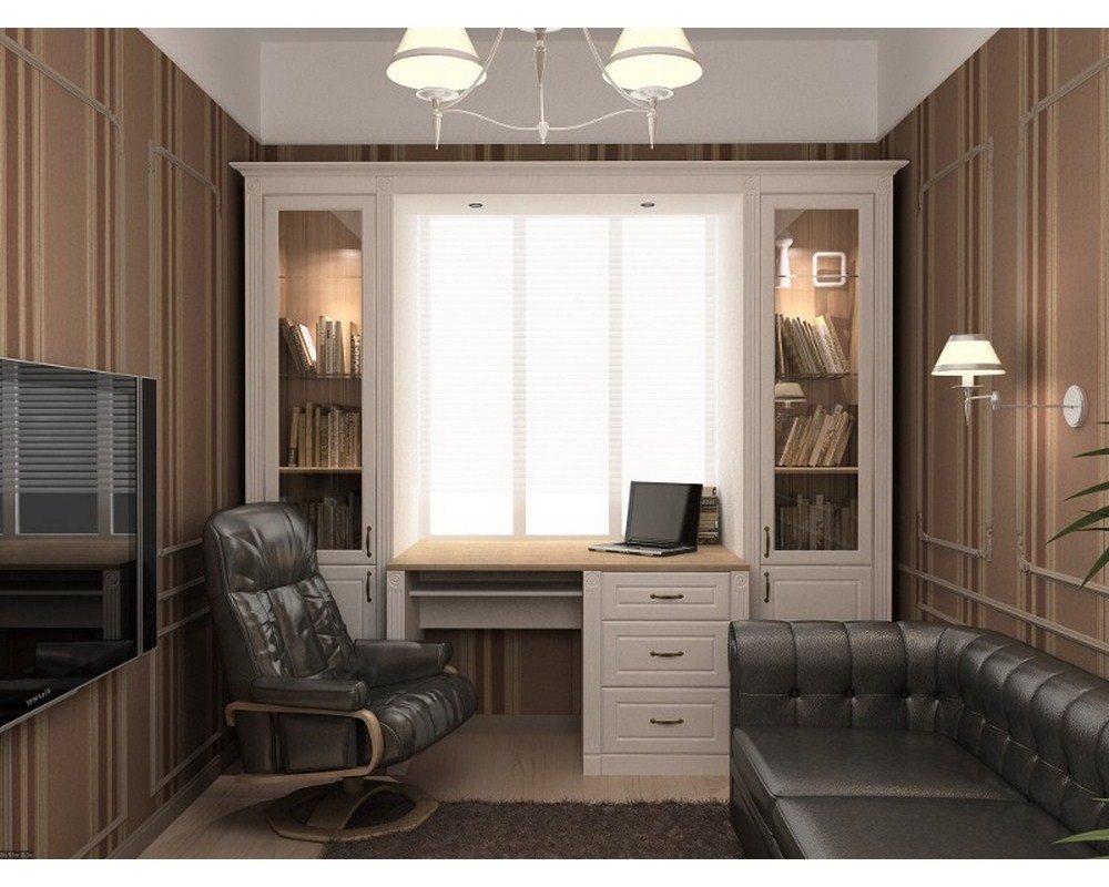 Письменный стол у окна со шкафами
