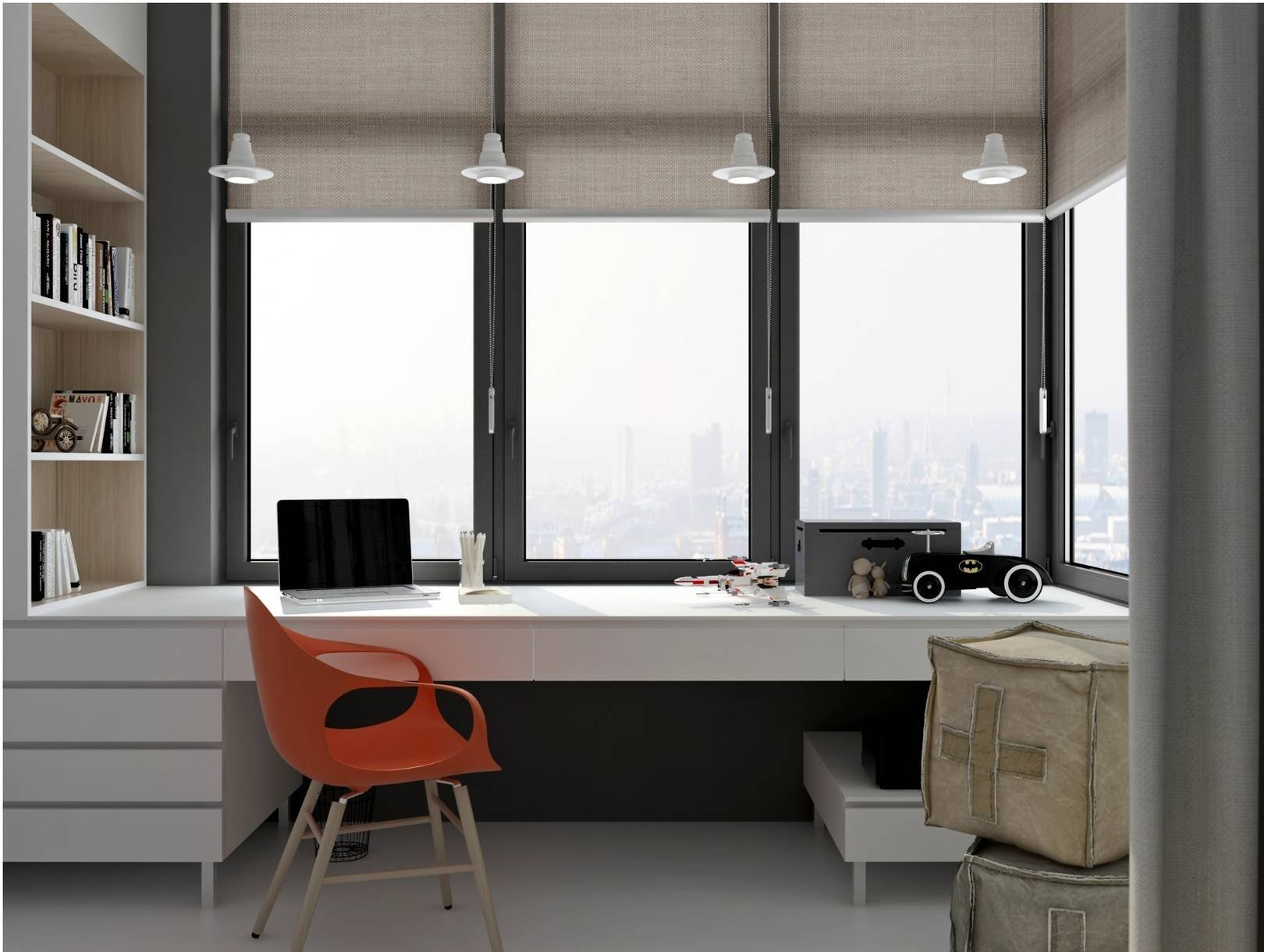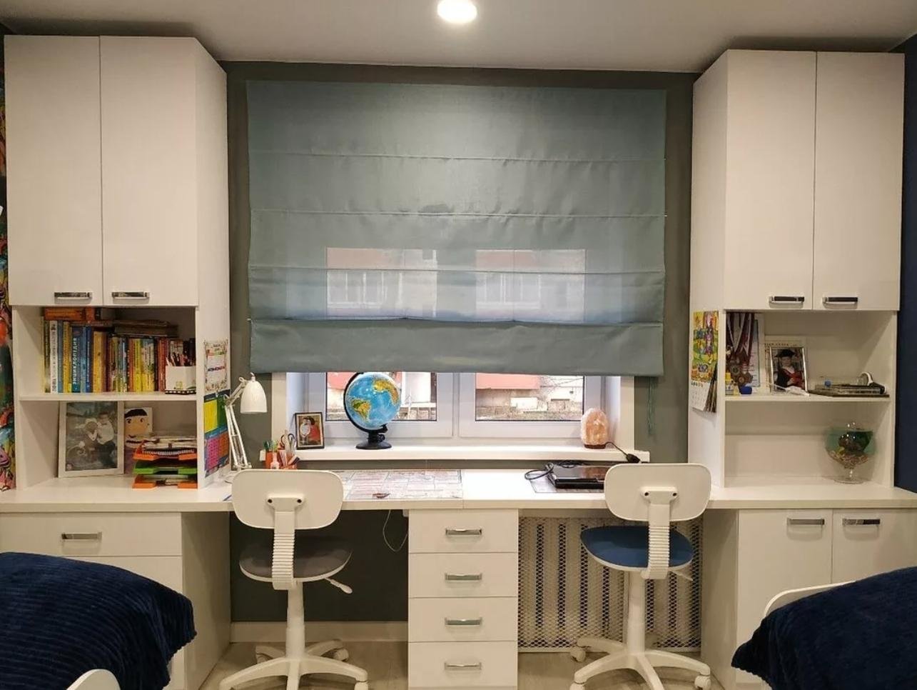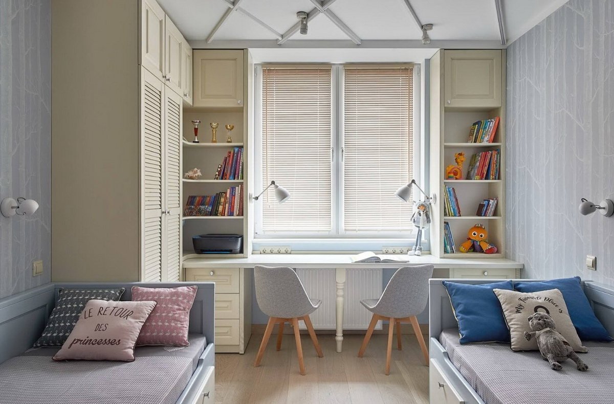 Рабочая зона у окна в детской для двоих