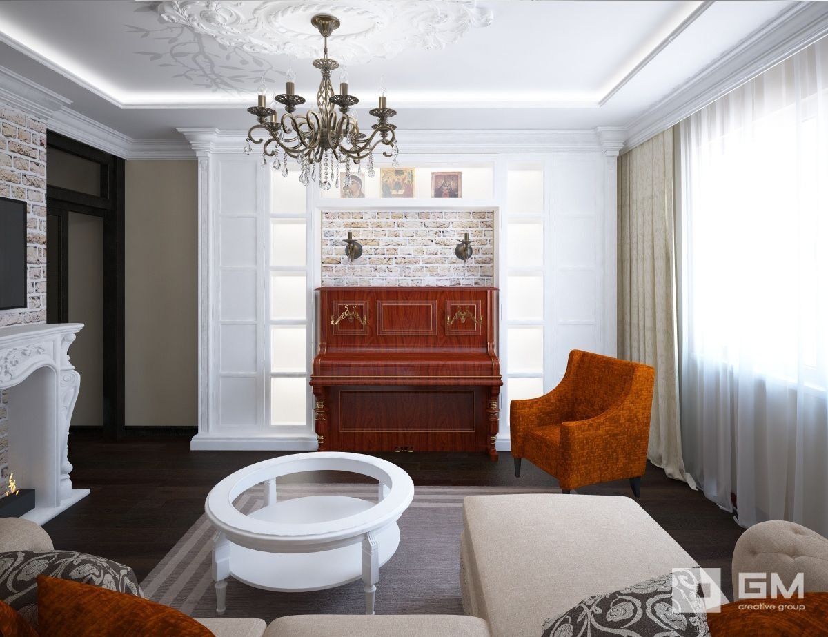 Гостиная в стиле Неоклассика с пианино