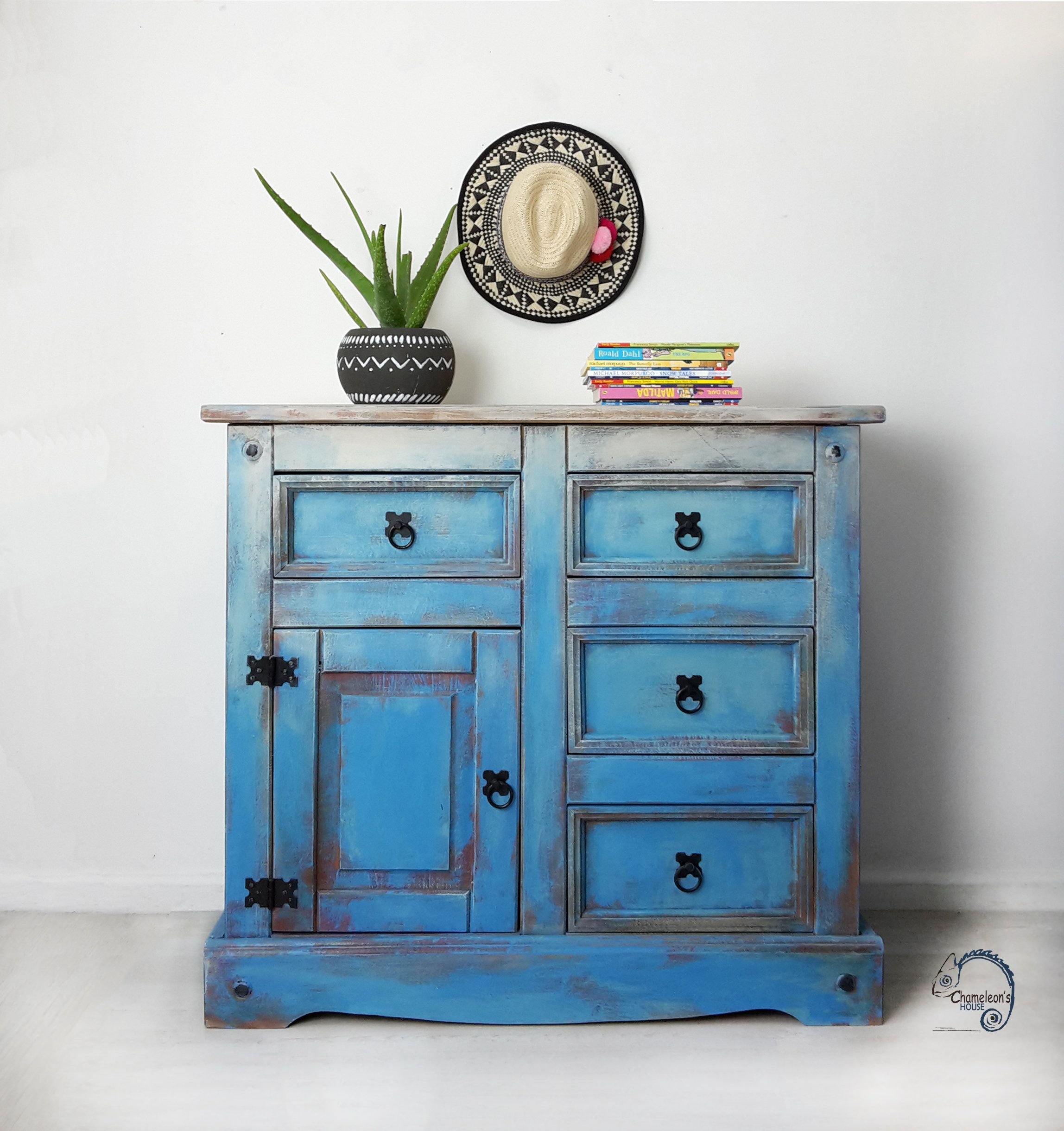 Синяя состаренная мебель